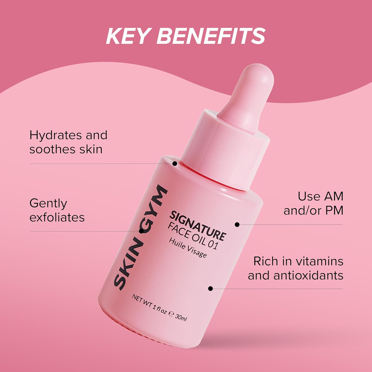 Skin Gym Signature Facial Oil, Moisturizing & Exfoliating - With Vitamin E, Jojoba, Rosehip, Apricot Seed