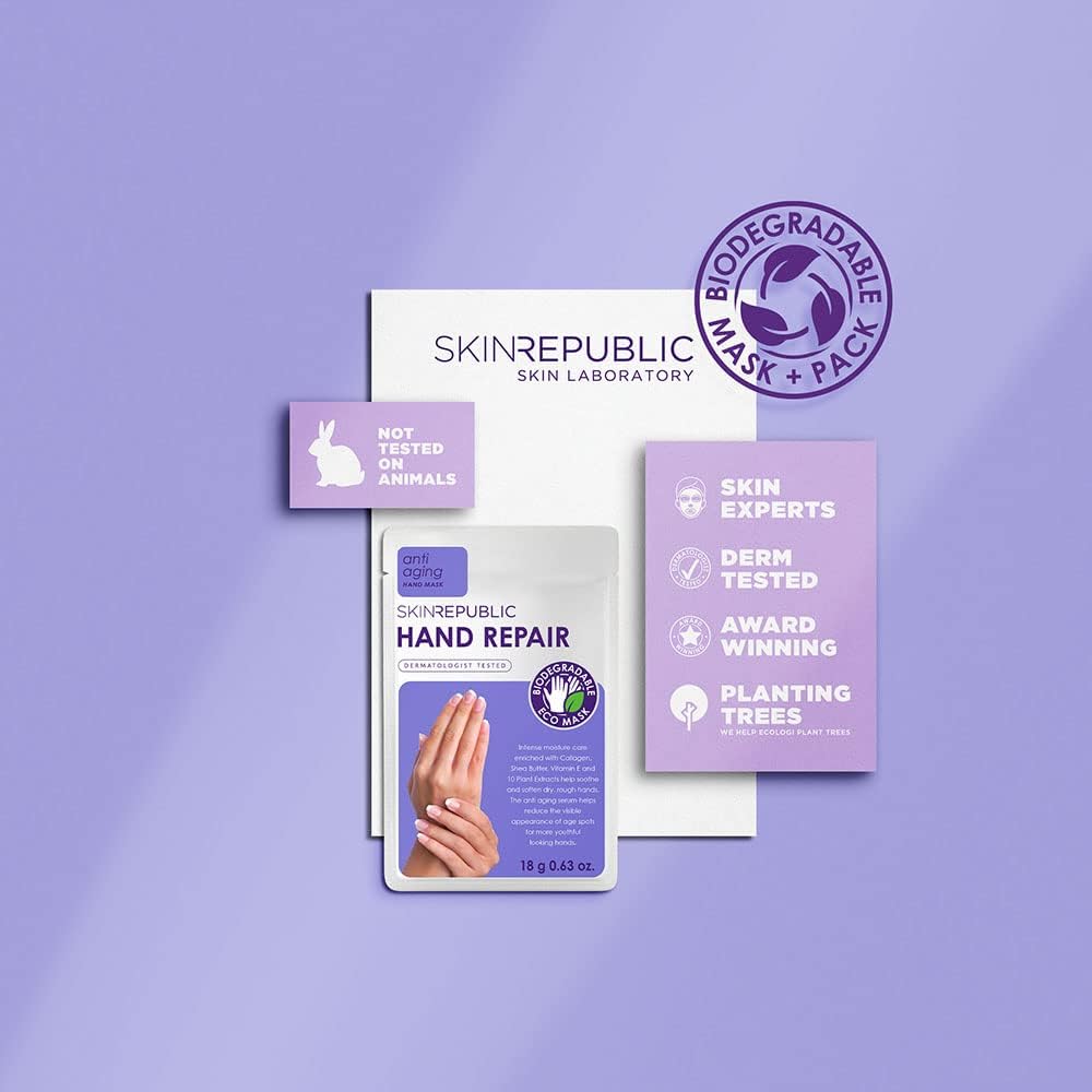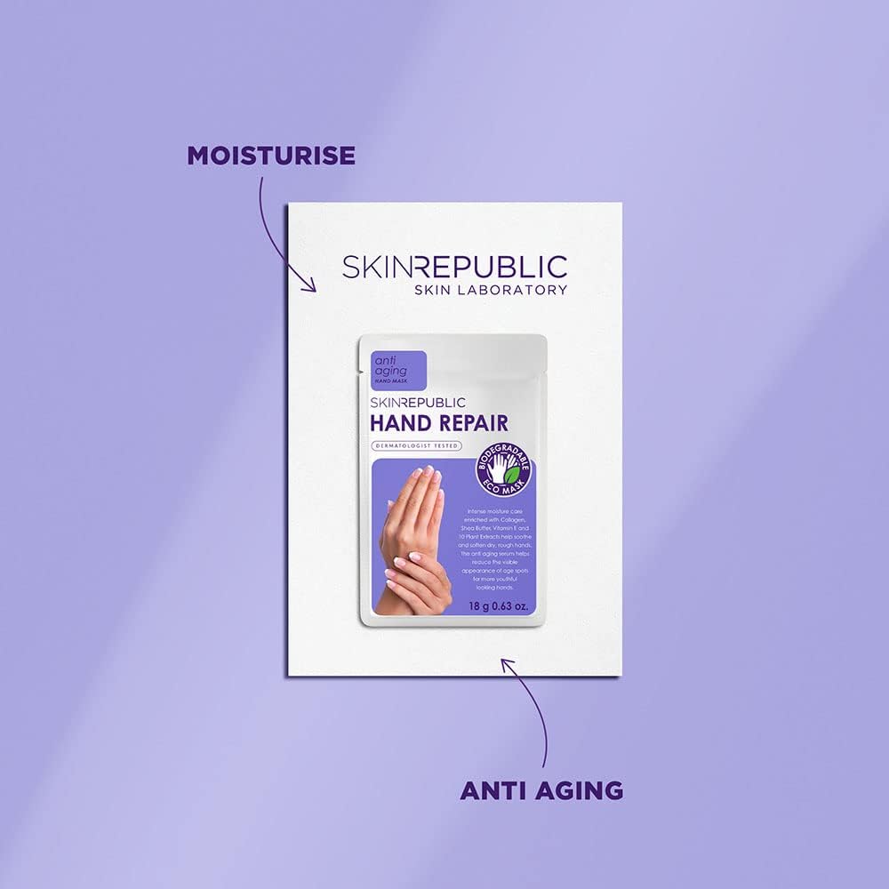 Skin Republic Hand Repair Mask | Moisturizing Gloves | With Collagen, Shea Butter & Vitamin E | For Dry, Rough Hands | Leaves Skin Soft, Smooth & Youthful (1 Pair)