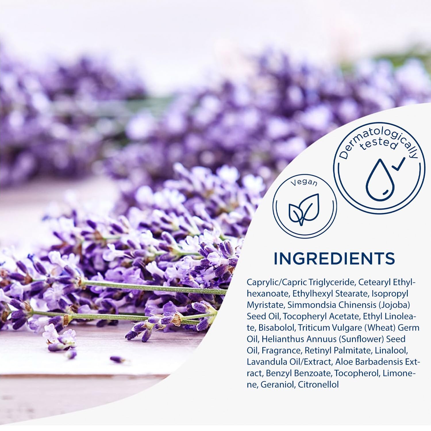 VALUABLE INGREDIENTS: Natural oils are proven to smooth the skin and protect it from moisture loss. The oil is quickly absorbed and leaves the skin feeling supple. With lavender fragrance