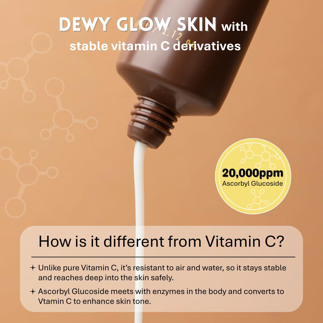 About this item VEGAN RADIANT GLOW FACE MOISTURIZER: Unleash your skin’s natural vitality with our Advanced Vitamin C Cream, designed for all skin types. This vegan formula, free from harsh chemicals, enhances your complexion by deeply hydrating without leaving any stickiness, perfect for maintaining a vibrant look throughout the year. KEY INGREDIENTS FOR MAXIMUM CARE: Our cream is enriched with 2% Ascorbyl Glucoside, a stable form of Vitamin C, along with ceramide and sodium hyaluronate. These ingredients work synergistically to protect the skin barrier and provide exceptional hydration, ensuring your skin stays resilient and hydrated. MOISTURIZING, SOOTHING, AND YOUTHFUL SKIN: Experience the benefits of deep moisturization with our cream that combines pentylene glycol, ceramide, and hyaluronic acid. These ingredients are pivotal in maintaining the skin’s moisture balance, soothing dryness, and promoting a youthful, elastic skin appearance. NON-STICKY, FRESH FINISH: Enjoy a lightweight, non-greasy formula that absorbs quickly into the skin, providing a refreshing finish. Our cream's smooth texture is ideal for use all year round, leaving your skin soft, moisturized, and comfortable without any residue. SKIN IRRITATION FREE FORMULATION: Formulated to be gentle on the skin, our cream has been tested to ensure it is free from irritation, making it suitable for even the most sensitive skin. With organic plant-derived ingredients like lemon and blueberry extracts, it soothes and revitalizes the skin safely. See more product details,VEGAN RADIANT GLOW FACE MOISTURIZER: Unleash your skin’s natural vitality with our Advanced Vitamin C Cream, designed for all skin types. This vegan formula, free from harsh chemicals, enhances your complexion by deeply hydrating without leaving any stickiness, perfect for maintaining a vibrant look throughout the year,KEY INGREDIENTS FOR MAXIMUM CARE: Our cream is enriched with 2% Ascorbyl Glucoside, a stable form of Vitamin C, along with ceramide and sodium hyaluronate. These ingredients work synergistically to protect the skin barrier and provide exceptional hydration, ensuring your skin stays resilient and hydrated,MOISTURIZING, SOOTHING, AND YOUTHFUL SKIN: Experience the benefits of deep moisturization with our cream that combines pentylene glycol, ceramide, and hyaluronic acid. These ingredients are pivotal in maintaining the skin’s moisture balance, soothing dryness, and promoting a youthful, elastic skin appearance,NON-STICKY, FRESH FINISH: Enjoy a lightweight, non-greasy formula that absorbs quickly into the skin, providing a refreshing finish. Our cream's smooth texture is ideal for use all year round, leaving your skin soft, moisturized, and comfortable without any residue,SKIN IRRITATION FREE FORMULATION: Formulated to be gentle on the skin, our cream has been tested to ensure it is free from irritation, making it suitable for even the most sensitive skin. With organic plant-derived ingredients like lemon and blueberry extracts, it soothes and revitalizes the skin safely