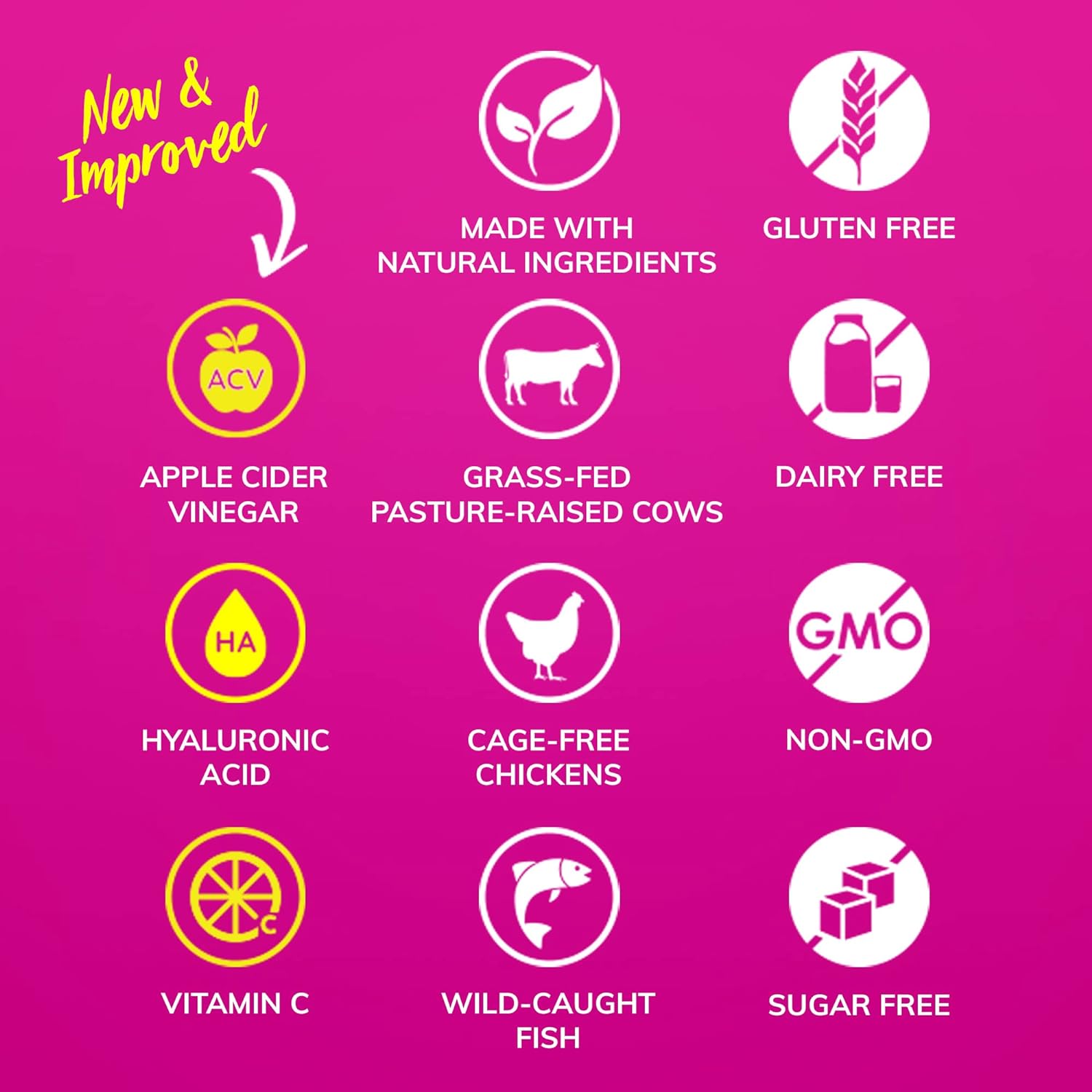 BULLET POINTS : 1 > HEALTHY SKIN, HEALTHY WEIGHT. Collagen and hyaluronic acid has shown an increase in skin elasticity and hydration, and supports cell regeneration, which supports youthful-looking skin. Apple cider vinegar supports a healthy metabolism and can aid in fat burn to help promote a healthy weight