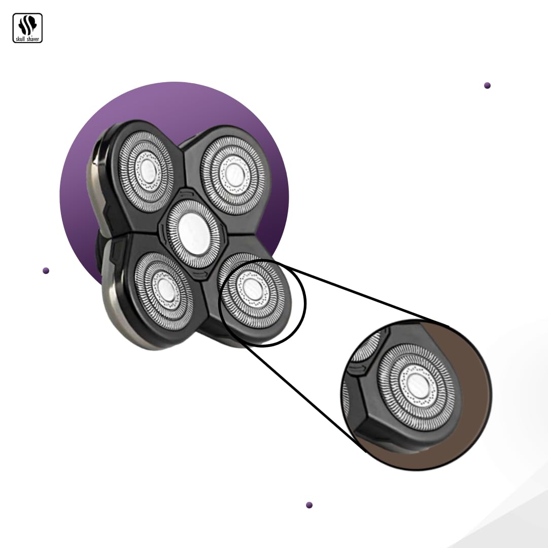 Skull Shaver Baron Replacement Shaver Head Blade - Smooth Close Shave - Wet & Dry Use - Flexible 5-Head Design - Quick Twist Lock - Universal Fit