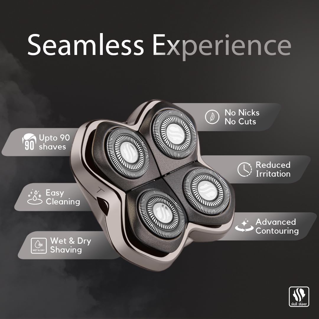 Skull Shaver Forte Pro 4 Head Replacement Blade - Shaver Blade For Wet & Dry Shaving - Rotary Heads Design - Japanese Stainless Steel - Compatible With Pitbull, Palm & Butterfly Kiss Shavers