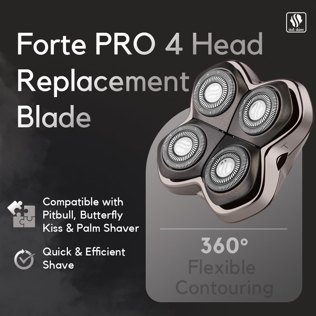 About this item Ultimate Shaver Replacement Blade: The Forte PRO 4 is compatible with all Pitbull, Palm, and Butterfly Kiss shavers; with innovative technology, this replacement blade offers a faster, closer shave Premium Replacement Blade: Japanese stainless steel ensures a sharp, long-lasting blade for the best experience; the spring-loaded blades also minimize skin irritation Wet & Dry Shaving Blade: Whether you prefer wet or dry shaving, this razor blade for men adapts to your routine; Skull Shaver's easy-to-remove blade system also simplifies cleaning Mess-Free Shaving: The replacement head keeps hair clippings out of the transmission for a reliable shaver blade; it's also designed to capture hair shavings efficiently to reduce mess Gold Standard in Shaving: With Skull Shaver, you'll have access to luxury-grade grooming tools that are long-lasting, efficient, and comfortable to use  See more product details,Ultimate Shaver Replacement Blade: The Forte PRO 4 is compatible with all Pitbull, Palm, and Butterfly Kiss shavers; with innovative technology, this replacement blade offers a faster, closer shave,Premium Replacement Blade: Japanese stainless steel ensures a sharp, long-lasting blade for the best experience; the spring-loaded blades also minimize skin irritation,Wet & Dry Shaving Blade: Whether you prefer wet or dry shaving, this razor blade for men adapts to your routine; Skull Shaver's easy-to-remove blade system also simplifies cleaning,Mess-Free Shaving: The replacement head keeps hair clippings out of the transmission for a reliable shaver blade; it's also designed to capture hair shavings efficiently to reduce mess,Gold Standard in Shaving: With Skull Shaver, you'll have access to luxury-grade grooming tools that are long-lasting, efficient, and comfortable to use