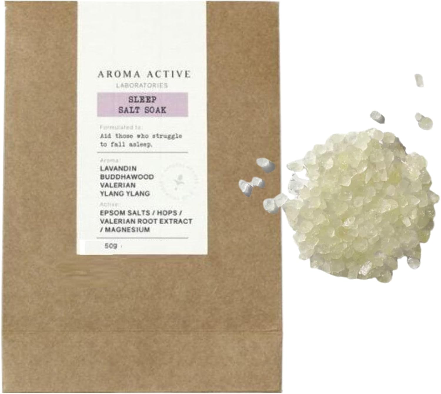 SLEEP SALT SOAK 50g - A relaxing salt soak to calm your body and mind for a good night’s sleep. Epsom Salts known to help relax the body and relieve tension. Magnesium promotes muscle relaxation. Sprinkle a handful of salts into warm running water