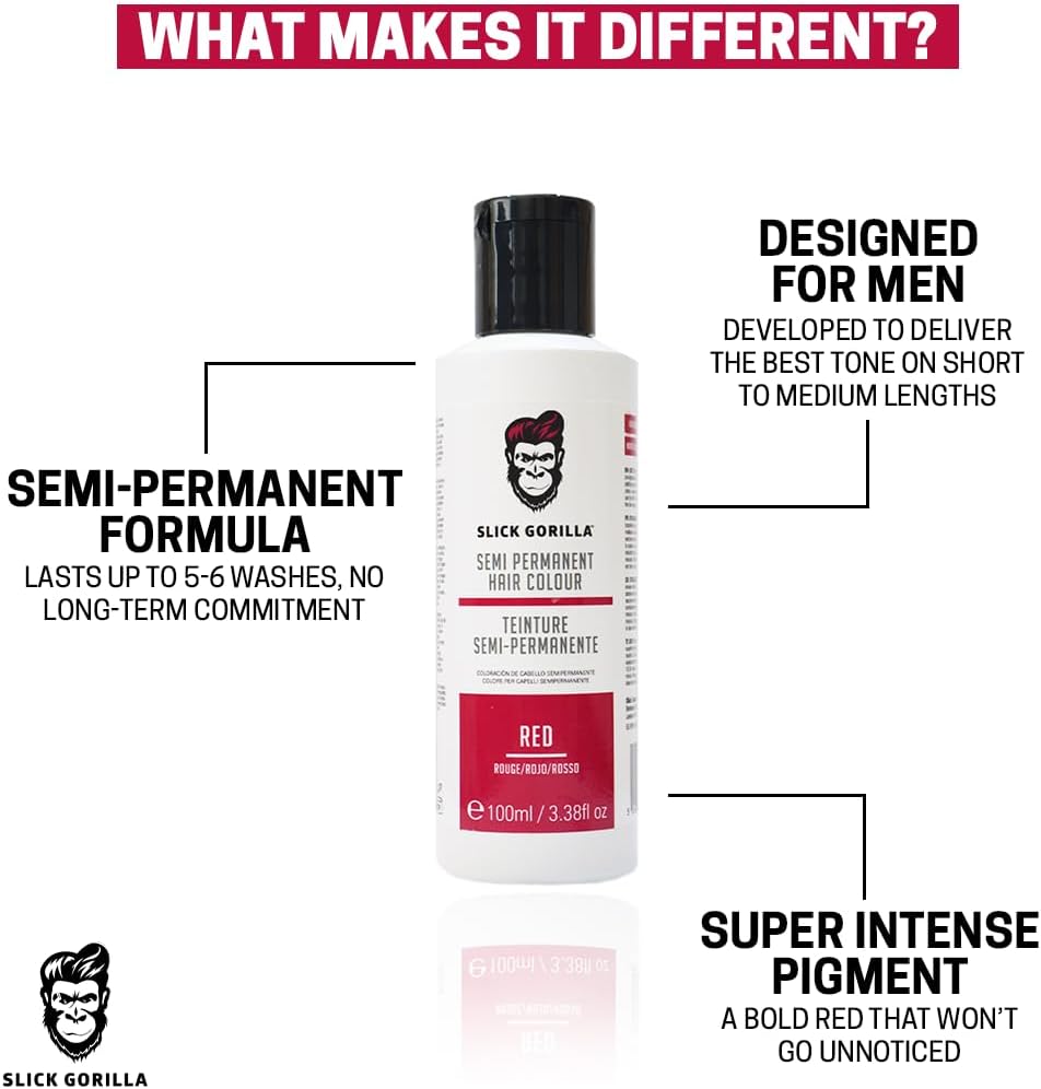 Slick Gorilla Vegan And Cruelty-Free Semi-Permanent Red Hair Colour (3.38 Fl Oz, 100 Ml Red)