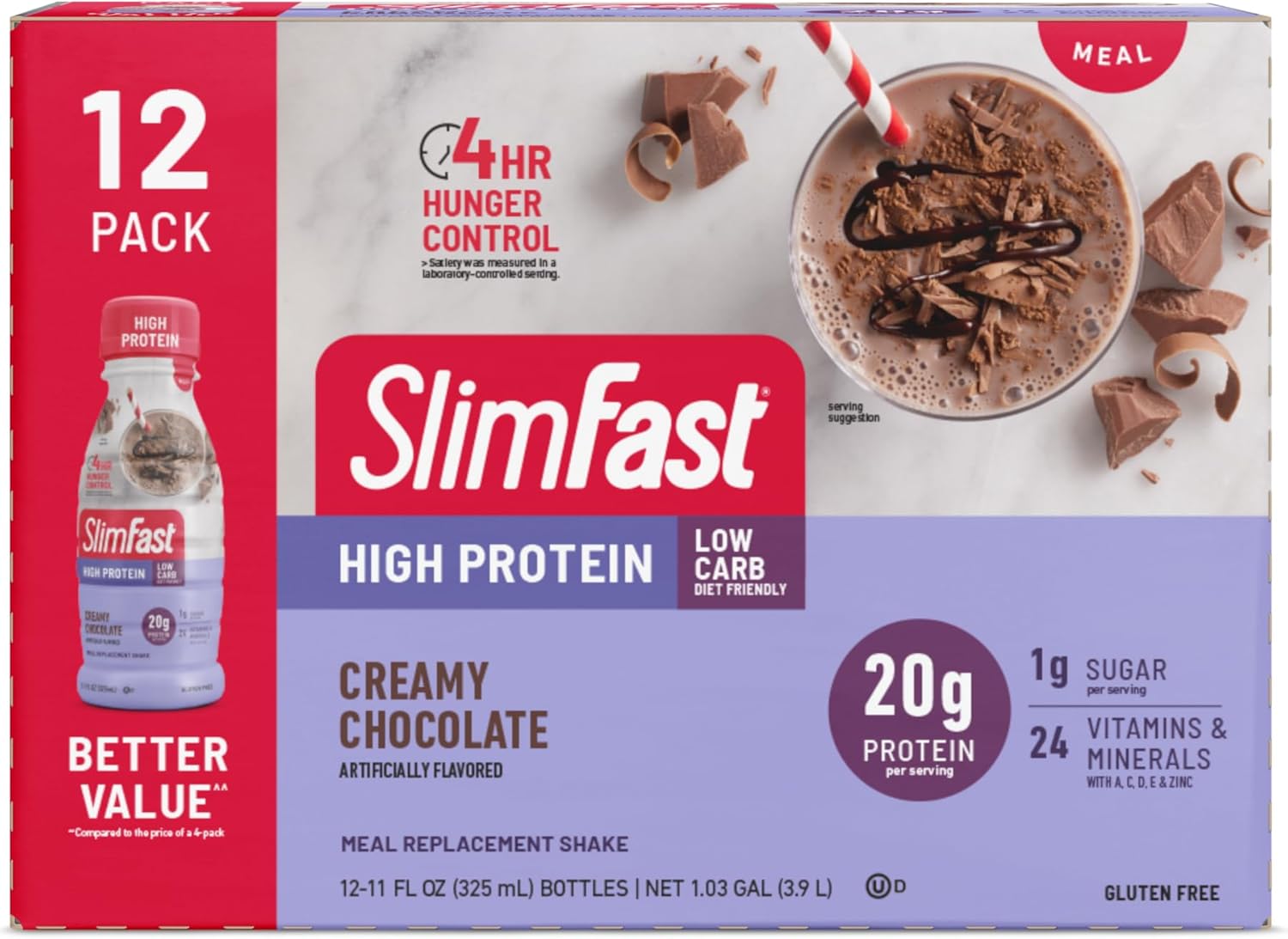 About this item MEAL REPLACEMENT SHAKE: SlimFast Meal Replacement Shakes are the perfect diet friendly beverage. Each shake is packed with 20g of Protein and 9g of Fat to keep you full for hours with a decadent mocha cappuccino flavor to satisfy your sugar cravings. DIGESTIVE SUPPORT: SlimFast Advanced Energy Shakes are packed with 5 grams of fiber to promote better digestion and curb hunger. GLUTEN FREE: Created with optimal nutrition in mind, our shakes are gluten free and packed with 24 Essential Vitamins and Minerals like Vitamin A, C, D, E and Zinc. Free from Artifical Flavors, Colors, and Sweeteners, our Shakes takes the hassle out of dieting on the go by providing you with a high quality drink that is equally delicious in taste! ON THE GO NOURISHMENT: At SlimFast, we understand that dieting can be hard. With 12 convenient, Ready to Drink 11 ounce bottles, our shakes are perfect for on the go, anytime meal replamement. Pack a shake with you so that you always have a quick, healthy indulgence that will keep you full and help you stay on track wherever your busy schedule takes you! LOW CARB FRIENDLY: Each shake contains only 2 grams of net carbs! See more product details,MEAL REPLACEMENT SHAKE: SlimFast Meal Replacement Shakes are the perfect diet friendly beverage. Each shake is packed with 20g of Protein and 9g of Fat to keep you full for hours with a decadent mocha cappuccino flavor to satisfy your sugar cravings,DIGESTIVE SUPPORT: SlimFast Advanced Energy Shakes are packed with 5 grams of fiber to promote better digestion and curb hunger,GLUTEN FREE: Created with optimal nutrition in mind, our shakes are gluten free and packed with 24 Essential Vitamins and Minerals like Vitamin A, C, D, E and Zinc. Free from Artifical Flavors, Colors, and Sweeteners, our Shakes takes the hassle out of dieting on the go by providing you with a high quality drink that is equally delicious in taste!,ON THE GO NOURISHMENT: At SlimFast, we understand that dieting can be hard. With 12 convenient, Ready to Drink 11 ounce bottles, our shakes are perfect for on the go, anytime meal replamement. Pack a shake with you so that you always have a quick, healthy indulgence that will keep you full and help you stay on track wherever your busy schedule takes you!,LOW CARB FRIENDLY: Each shake contains only 2 grams of net carbs!