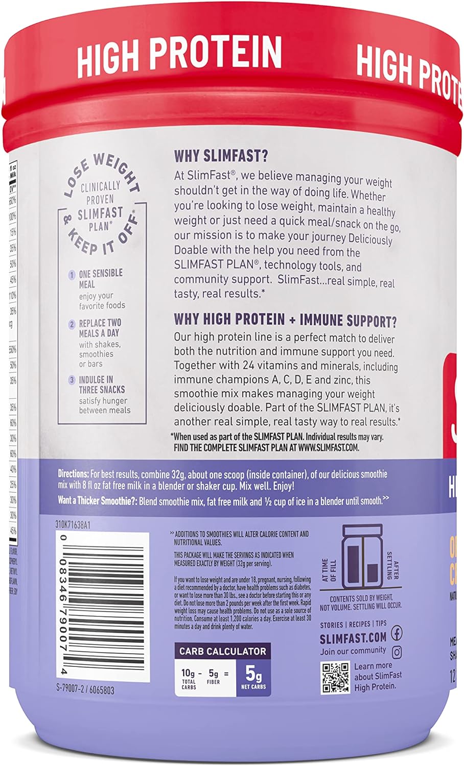 DESCRIPTION : SlimFast Advanced Immunity High Protein Meal Replacement Smoothie Mix, Orange Cream Swirl, Powder, 20g of Protein, 12 Servings (Pack of 2) - Packaging May Vary
