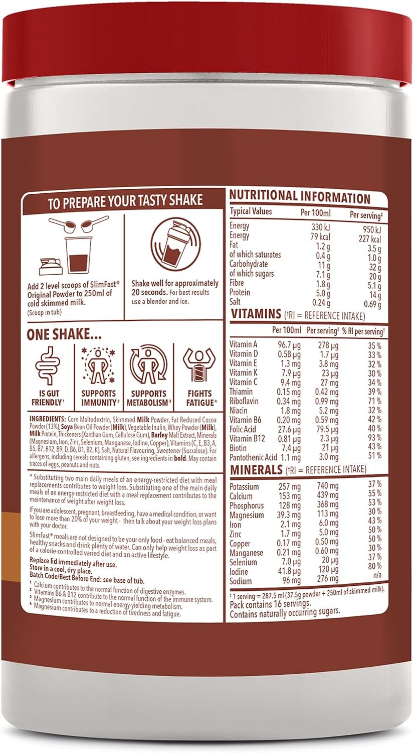 SlimFast Meal Replacement Shake for Weight Loss & Balanced Diet, Vitamins and Minerals, Low Calorie, High Protein, Chocolate Flavour, 16 servings, 600 g, Packaging May Vary