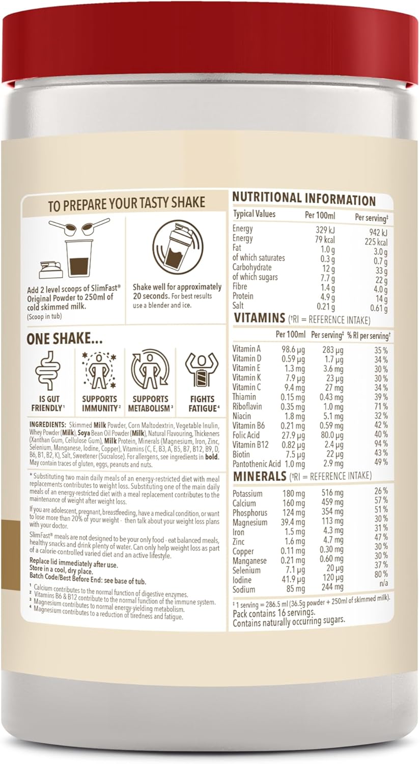 Slimfast Meal Replacement Shake For Weight Loss & Balanced Diet, Vitamins And Minerals, Low Calorie, High Protein, Vanilla Flavour, 16 Servings, 584 G, Packaging May Vary