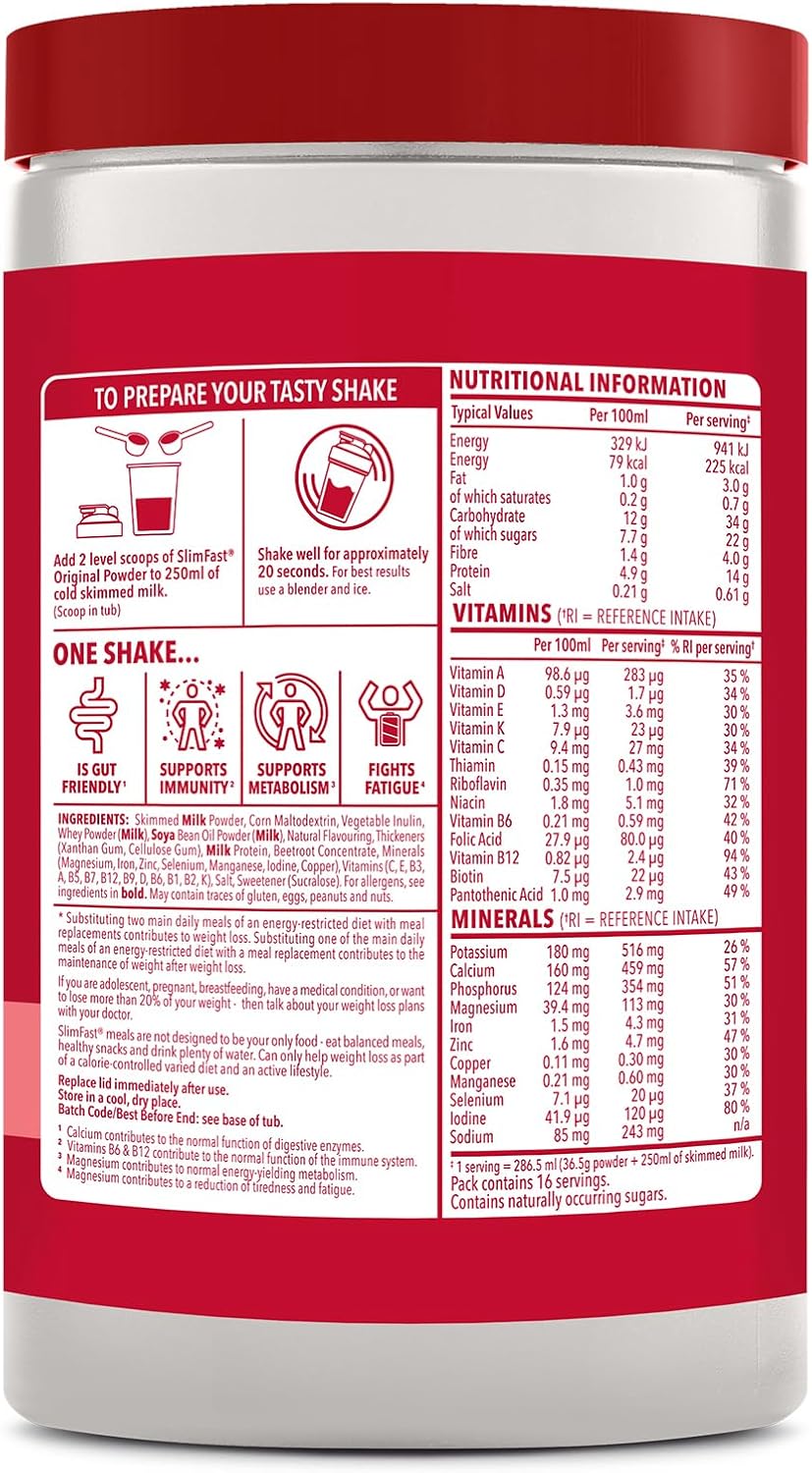 Slimfast Meal Replacement Shake Weight Loss & Balanced Diet, Vitamins And Minerals, Low Calorie, High Protein, Strawberry Flavour, 16 Servings, 584 G, Packaging May Vary