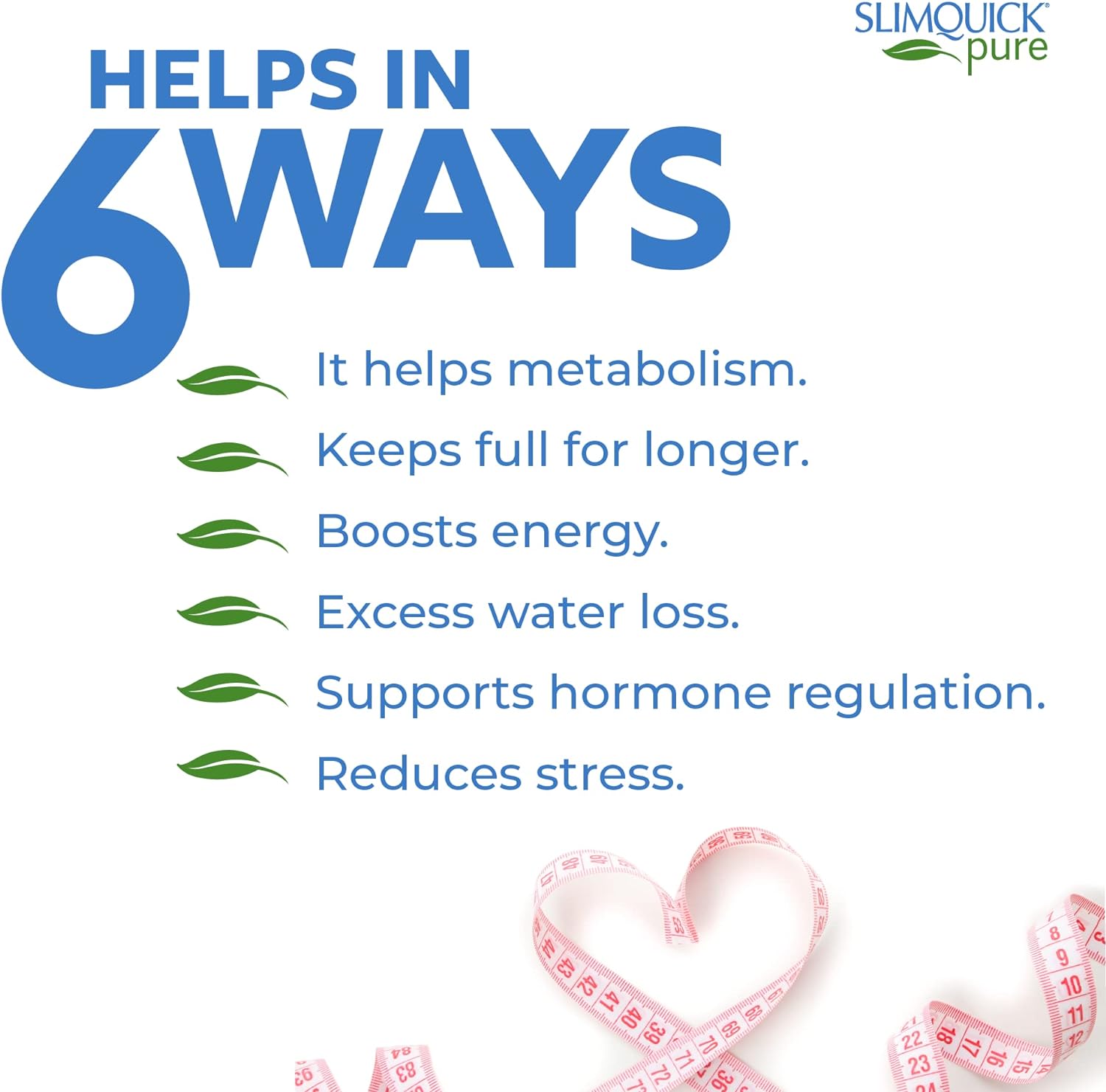 Helps In 6 Ways - Slimquick Pure 3X Extra Strength Helps Women Get In Shape In 6 Ways. It Helps Metabolism. Keeps Full For Longer. Boosts Energy. Excess Water Loss. Supports Hormone Regulation And Production. Reduces Stress