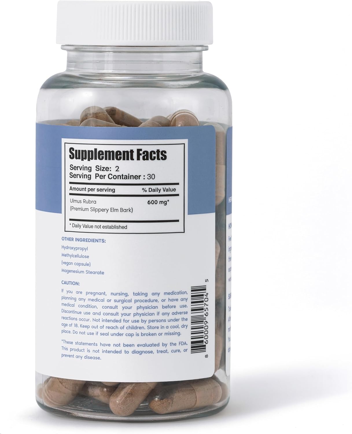 Ingredients: Each Capsule Contains 600 Mg Of Ulmus Rubra (Slippery Elm Bark). Vegan Capsules Ensure Compatibility With Various Dietary Preferences