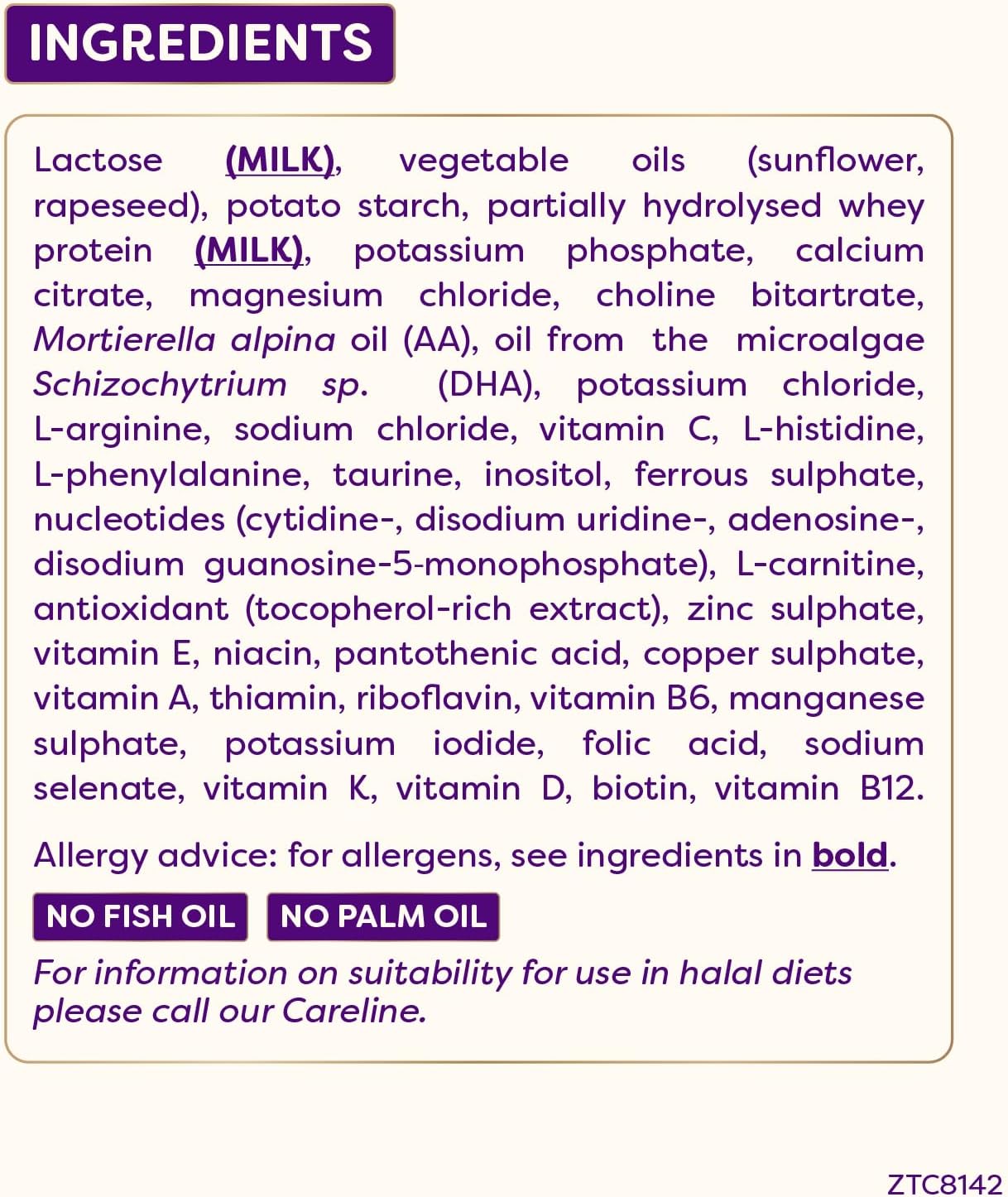 Product Description We have been leading research in baby nutrition for over 100 years and have over 70 years breast milk research. SMA Anti-Reflux Baby Milk Powder is a nutritionally complete formula for the dietary management of babies with significant reflux (regurgitation/spitting up). It can be used as the sole source of nutrition from birth in place of your usual formula feed and can be mixed with foods once weaning has begun. Our SMA Anti-Reflux formula milk uses an easy to digest blend and contains a unique combination of starch and 100% Whey, partially hydrolysed protein. The thickened formula with added starch is designed to help feeds stay down. SMA Anti-Reflux Baby Milk Powder is a food for special medical purposes and must be used under medical supervision. No palm oil. Ingredients Lactose (Milk), Vegetable Oils (Sunflower, Rapeseed), Potato Starch, Partially Hydrolysed Whey Protein (Milk), Calcium Phosphate, Long Chain Polyunsaturated Fatty Acids (DHA (Fish), AA), Potassium Citrate, Magnesium Chloride, Choline Bitartrate, Calcium Chloride, L-Arginine, Sodium Chloride, Vitamin C, L-Histidine, L-Tyrosine, Taurine, Inositol, Ferrous Sulphate, Nucleotides (Cytidine -, Disodium Uridine -, Adenosine -, Disodium Guanosine -5'-Monophosphate), L-Carnitine, Zinc Sulphate, Antioxidants (Tocopherol-Rich Extract, Ascorbyl Palmitate), Vitamin E, Niacin, Pantothenic Acid, Copper Sulphate, Vitamin A, Thiamin, Riboflavin, Vitamin B6, Manganese Sulphate, Potassium Iodide, Folic Acid, Sodium Selenate, Vitamin K, Vitamin D, Biotin, Vitamin B12 P.when('A').execute(function(A) { A.on('a:expander:toggle_description:toggle:collapse', function(data) { window.scroll(0, data.expander.$expander[0].offsetTop-100); }); }); Directions How to Open and Prepare Your Baby's Feed Whilst this product is made under strict hygienic conditions, it is not sterile. Failure to follow instructions on preparation and storage may make your baby ill. 1 Pull the safety seal and open the lid. The scoop is provided under the lid. Lift the tab, pull on the foil seal, carefully and safely remove the seal and dispose of it. 2 Wash hands well. Wash and sterilise all utensils according to manufacturer's instructions. 3 Boil 1 litre of tap water. Allow to cool for no more than 30 minutes. Measure the required amount of water (see feeding guide) into a sterilised bottle, carefully - the water is hot. Do not use artificially softened or repeatedly boiled water. 4 Place the sterilised teat and cap on the bottle. Cool bottle under cold running water or in a bowl or jug of cold water until lukewarm, do not immerse the teat. 5 Using only the scoop provided, add the correct number of scoops of powder (see feeding guide), levelling off each scoop with the back of a clean, dry knife. Store the scoop in suspension inside the can and replace lid. 6 Shake bottle well until powder has fully dissolved. Test temperature by shaking a few drops on to the inside of your wrist - milk should be lukewarm. Thicker formula, may require a fast flow teat. Important Feeding Information Do not add extra powder or water to make feeds stronger or weaker and do not press powder into scoop. Using too much or too little powder can make your baby ill. We recommend preparing each feed in individual bottles when required. For hygienic reasons, discard unfinished feed in the bottle as soon as possible. For older babies, made-up formulae can be added to food but not heated. For enteral use only. Do not use with other feed thickeners or antacids. Do not alter or add to formulae unless medically directed. Do not warm feeds in microwave as it will cause milk to thicken, and hot spots may occur and cause scalding. Remember, cows' milk should not be used as a drink during the first year. Safety Warning IMPORTANT NOTICE: Breast milk is best for babies and breastfeeding should continue for as long as possible. This product must be used under medical supervision. SMA® Anti-Reflux is a special formula intended for the dietary management of bottle-fed babies when significant reflux (regurgitation) is a problem. It is suitable as the sole source of nutrition up to 6 months of age, and in conjunction with solid food up to 12 months of age. If the baby's reflux does not improve within 2 weeks of starting SMA® Anti-Reflux, or if the baby fails to thrive, the family doctor should be consulted. SMA® Anti-Reflux is not suitable for those who are allergic to cows' milk protein, lactose intolerant, or who suffer from galactosaemia or require a galactose free diet. When bottle-feeding do not allow prolonged or frequent contact of milk feeds with teeth as this increases the risk of tooth decay. Ask your healthcare professional or dentist for advice. Always hold your baby while feeding. Do not leave baby unattended as they might choke. Manufacturer Contact Information Manufacturers Address Produced for: SMA® Nutrition, 1 City Place, Gatwick, RH6 0PA. In Republic of Ireland: 3030 Lake Drive, Citywest Business Campus, Dublin 24. Return To Guarantee: This product should reach you in perfect condition. If it does not please call us and we will be happy to investigate this for you. We will need some details, so please do not dispose of the pack or its contents. This guarantee does not affect your statutory rights. SMA® nutrition careline Here to support you with your parenting and feeding queries SMA® Nutrition, 1 City Place, Gatwick, RH6 0PA. UK 0800 081 81 80 www.smababy. In Republic of Ireland: 3030 Lake Drive, Citywest Business Campus, Dublin 24. ROI 1800 931 832 www.smababy.ie Telephone Helpline UK 0800 081 81 80 ROI 1800 931 832 Web Address www.smababy. www.smababy.ie Social Media Facebook @SMABabyClubUkIreland See more,SMA Anti-Reflux Baby Milk Powder is specially designed for the dietary management of babies with frequent reflux (regurgitation/spitting up) SMA Anti-Reflux Baby Milk Powder is specially designed for the dietary management of babies with frequent reflux (regurgita