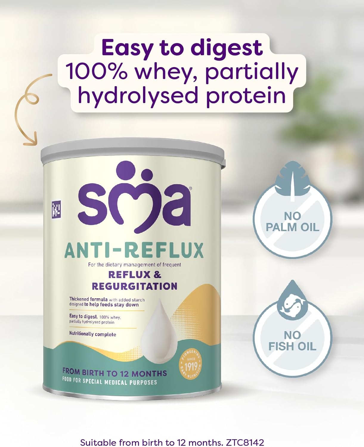 About The Product : SMA Anti-Reflux Baby Milk Powder is specially designed for the dietary management of babies with frequent reflux (regurgitation/spitting up) SMA Anti-Reflux Baby Milk Powder is specially designed for the dietary management of babies with frequent reflux (regurgitation/spitting up)