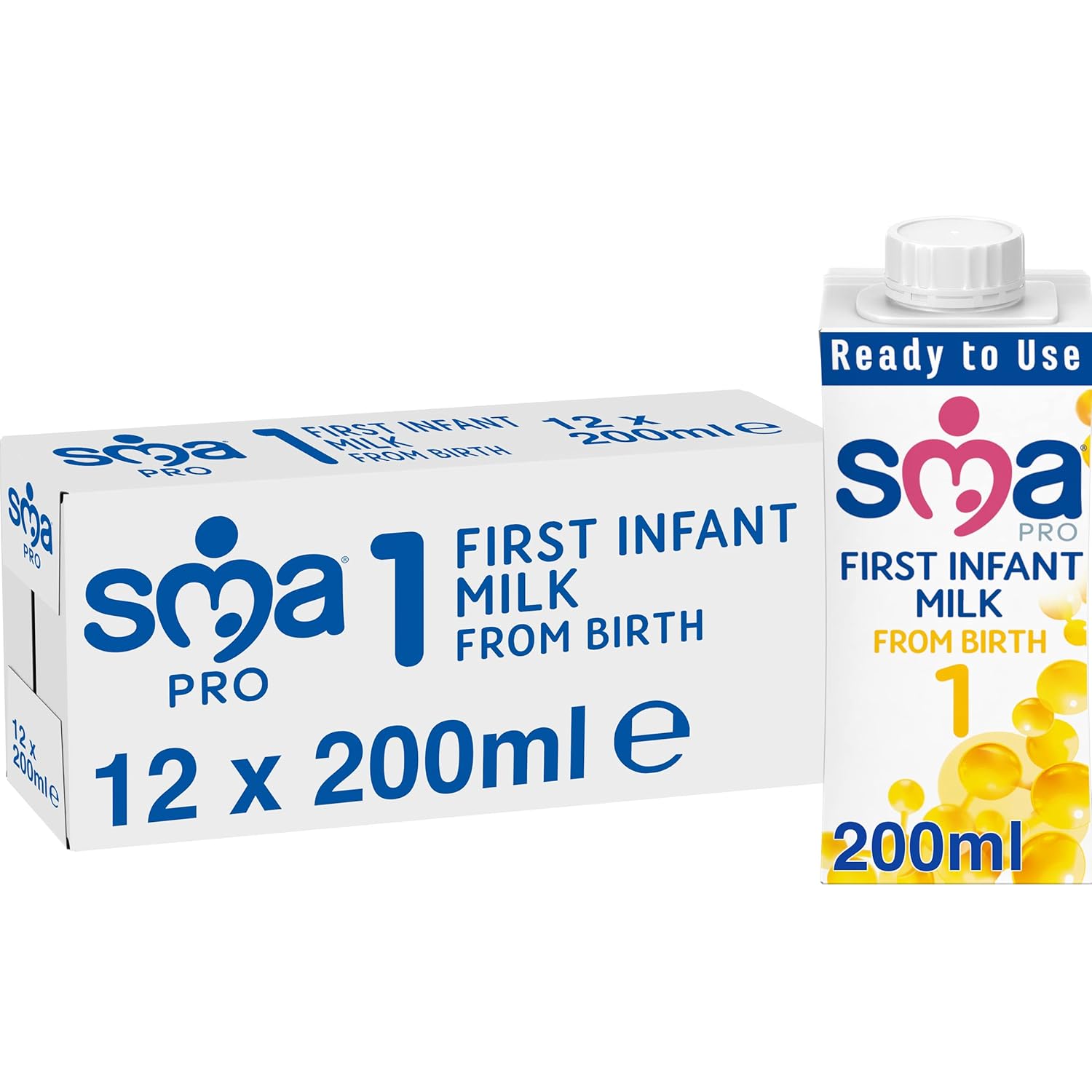 Sma First Infant Baby Milk, Pro From Birth, Ready To Use, Liquid Formula Milk, 200 Ml (Pack Of 12), Packaging May Vary
