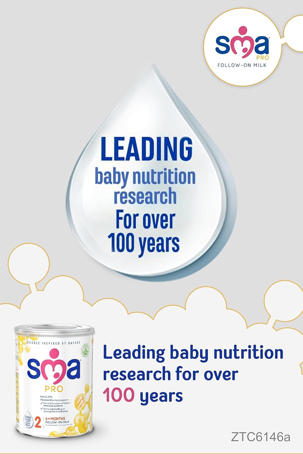 SMA Follow-on Baby Formula Milk is tailored for babies 6 months+ as part of a varied weaning diet and contains Iron to help support normal cognitive development