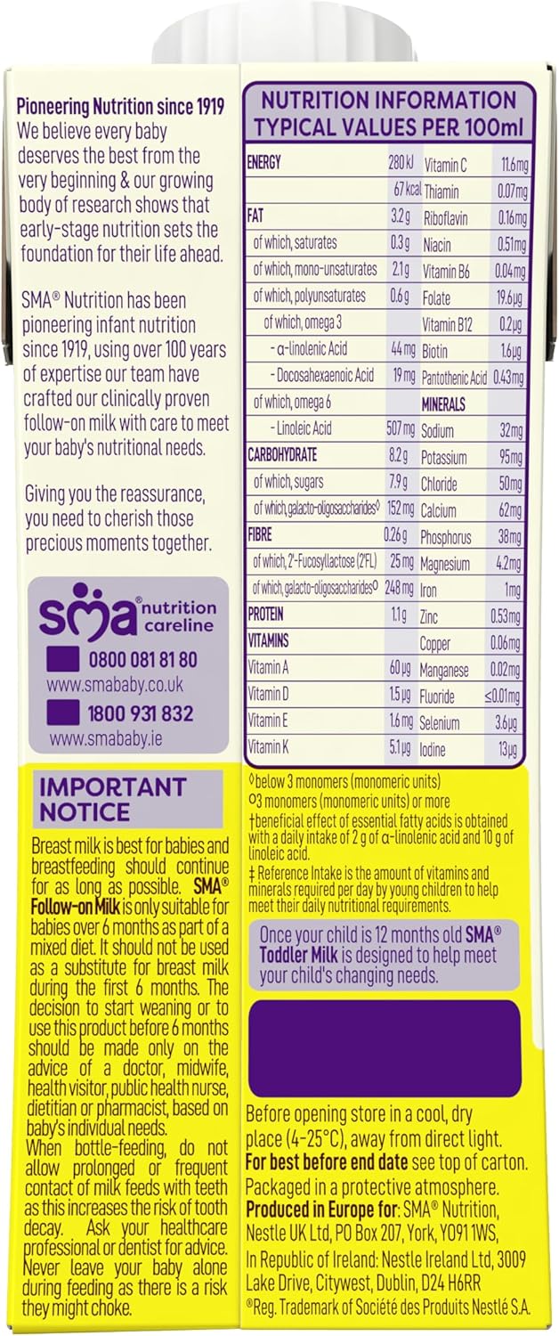 About The Product : SMA PRO Follow-on Baby Milk is tailored for babies 6 months+ as part of a varied weaning diet and contains Iron to help support normal cognitive development ?