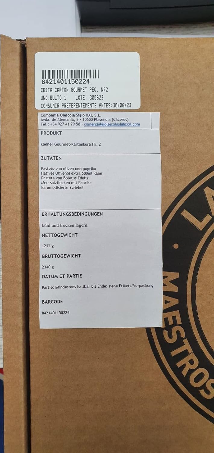 This Small Gourmet Gift Basket by La Chinata was specially created with food lovers in mind. Contents: Extra Virgin Olive Oil (Can 500 ml) Caramelized Onion (220 g) Red Pepper & Olive Pâté (180 g) Porcini Mushroom Pâté (180 g) Sea Salt Crystals 'Smoked Paprika' (165 g) The products are presented in an attractive cardboard basket, wrapped in cellophane. The ideal gift for food lovers,This Small Gourmet Gift Basket by La Chinata was specially created with food lovers in mind