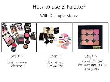About this item Designed by a Pro: The first and only of its kind, this innovative Magnetic Makeup Palette, patented and exclusively created by Emmy Award winner Zena Green, Head of Makeup at 'Dancing with the Stars,' revolutionizes beauty organization. Facing the challenge of transporting her kit between prestigious sets from the Oscars to the Grammys, Zena sought a more efficient solution. Her creation allows you to condense different makeup brands into one compact kit, simplifying your beauty routine Spacious Yet Sleek: The Small empty Magnetic MakeUp Palette with a clear window effortlessly fits up to 9 standard-sized single eyeshadows in its slim and stylish frame.The clear window allows you to see all of your shades at a glance. Measuring 3.8" L x 3.8" W x 0.56" D on the outside and 3.2 L x 3.2" W x 0.25" D on the inside. It features a fold-under lid to maximize space and its perfect for makeup enthusiasts and professionals who needs a compact, travel-friendly solution Universal Compatibility: The Z Palette's magnetic base is designed to fit all major makeup brands—MAC, NARS, Benefit, Anastasia, Elf, NYX, and more. This make up palette promises endless customization options, making it perfect for those looking to streamline their makeup collection into one neatly organized and accessible location which not only helps you save time during your makeup routine, but also saves money so you don’t purchase duplicate products. Jet-Set Ready: Tailor-made for the traveling makeup artist and the on-the-go beauty enthusiast, the Z Palette turns chaos into order, packing your must-haves into one sleek, secure, and fashionable kit. Ditch the hassle of multiple compacts—your Z Palette is all you need to stay glam, whatever the destination.. Built to Last, Easy to Love: The Z Palette packs a punch with its tough, laminate-coated shell, strong magnetic clasp, spill-proof and a cinch to clean. It comes with 10 cool metal stickers, making it a snap to mix and match any makeup pan, magnetic or not. This palette isn’t just durable; it’s your canvas to customize, organize, and jazz up your beauty game. Customize, Organize, and Simplify. See more product details,Designed by a Pro: The first and only of its kind, this innovative Magnetic Makeup Palette, patented and exclusively created by Emmy Award winner Zena Green, Head of Makeup at 'Dancing with the Stars,' revolutionizes beauty organization. Facing the challenge of transporting her kit between prestigious sets from the Oscars to the Grammys, Zena sought a more efficient solution. Her creation allows you to condense different makeup brands into one compact kit, simplifying your beauty routine,Spacious Yet Sleek: The Small empty Magnetic MakeUp Palette with a clear window effortlessly fits up to 9 standard-sized single eyeshadows in its slim and stylish frame.The clear window allows you to see all of your shades at a glance. Measuring 3.8" L x 3.8" W x 0.56" D on the outside and 3.2 L x 3.2" W x 0.25" D on the inside. It features a fold-under lid to maximize space and its perfect for makeup enthusiasts and professionals who needs a compact, travel-friendly solution,Universal Compatibility: The Z Palette's magnetic base is designed to fit all major makeup brands—MAC, NARS, Benefit, Anastasia, Elf, NYX, and more. This make up palette promises endless customization options, making it perfect for those looking to streamline their makeup collection into one neatly organized and accessible location which not only helps you save time during your makeup routine, but also saves money so you don’t purchase duplicate products,Jet-Set Ready: Tailor-made for the traveling makeup artist and the on-the-go beauty enthusiast, the Z Palette turns chaos into order, packing your must-haves into one sleek, secure, and fashionable kit. Ditch the hassle of multiple compacts—your Z Palette is all you need to stay glam, whatever the destination,Built to Last, Easy to Love: The Z Palette packs a punch with its tough, laminate-coated shell, strong magnetic clasp, spill-proof and a cinch to clean. It comes with 10 cool metal stickers, making it a snap to mix and match any makeup pan, magnetic or not. This palette isn’t just durable; it’s your canvas to customize, organize, and jazz up your beauty game. Customize, Organize, and Simplify
