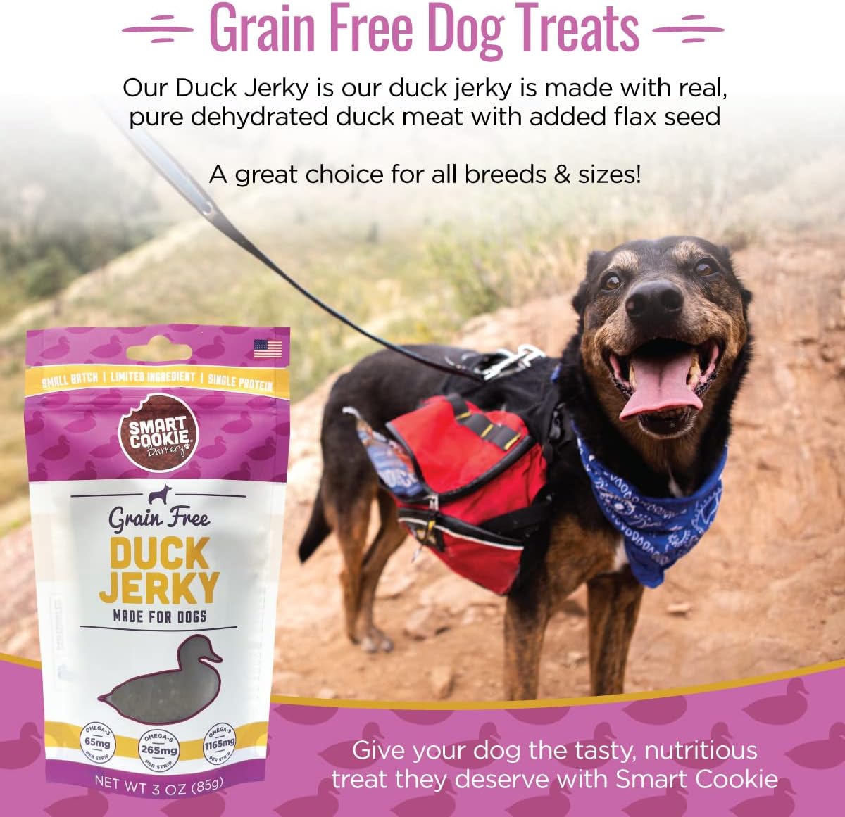 Smart Cookie Duck Jerky Dog Treats With Flax Seed, Omega Oils- Hypoallergenic Strips For Dogs And Puppies With Allergies, Sensitive Stomachs - Dehydrated, Grain Free, Made In Usa - 3Oz Bag, Pack Of 1