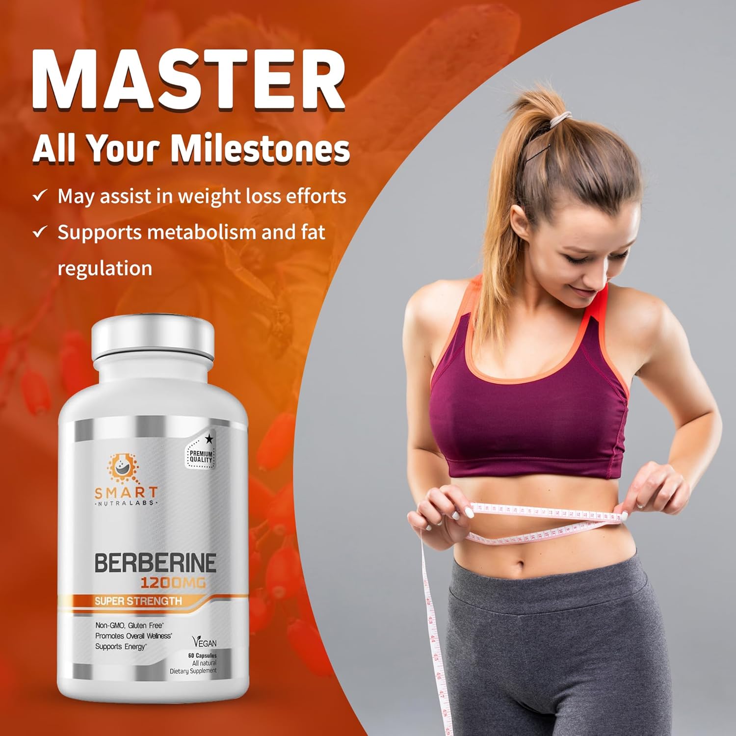 Smart Nutra Labs Premium Berberine Hcl 1200Mg- 60 Vegan Capsules, 100% Pure Berberine Supplement- Non-Gmo, Gluten Free