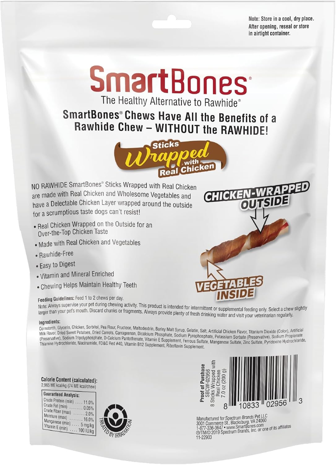 Smartbones Have Absolutely No Rawhide In Them. They Are Made With Wholesome Vegetables & Real Chicken. This Makes Smartbones Highly Digestible, And Highly Palatable. They Are Also Enriched With Vitamins & Mineralsā¦Making Them Much Healthier For Dogs Than Any Rawhide Chew! Smartbones Have All The Benefits Of A Rawhide Chew...Without The Rawhide! No Rawhide Smartbones Are Made With Real Chicken And Wholesome Vegetables, And Have A Delectable Chicken Layer Wrapped Around The Outside, For A Scrumptious Taste Dogs CanāT Resist! Give Your Pup A Chew That Helps Maintain Healthy Teeth And Gums Through The Natural Action Of Chewing, While Also Providing Flavor They Love. Smartbone Chicken Wrapped Sticks Are Enriched With Vitamins And Minerals And Perfectly Sized For Your Dog. TheyāLl Love The Vegetable Outside And Delicious Chicken Inside And Outside. These Fun Shaped Treats Are Easy To Digest, Making Them A Chew Both You And Your Dog Can Love! Each Pack Contains 8 Chicken Wrapped Sticks