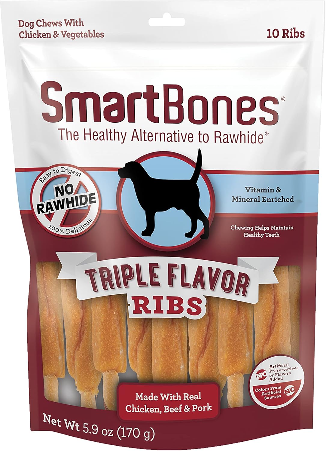 Smartbones No Artificial Colors Or Preservatives Rib And Wing Chews, Treat Your Dog To A Fun Shapped Triple Flavor Chew