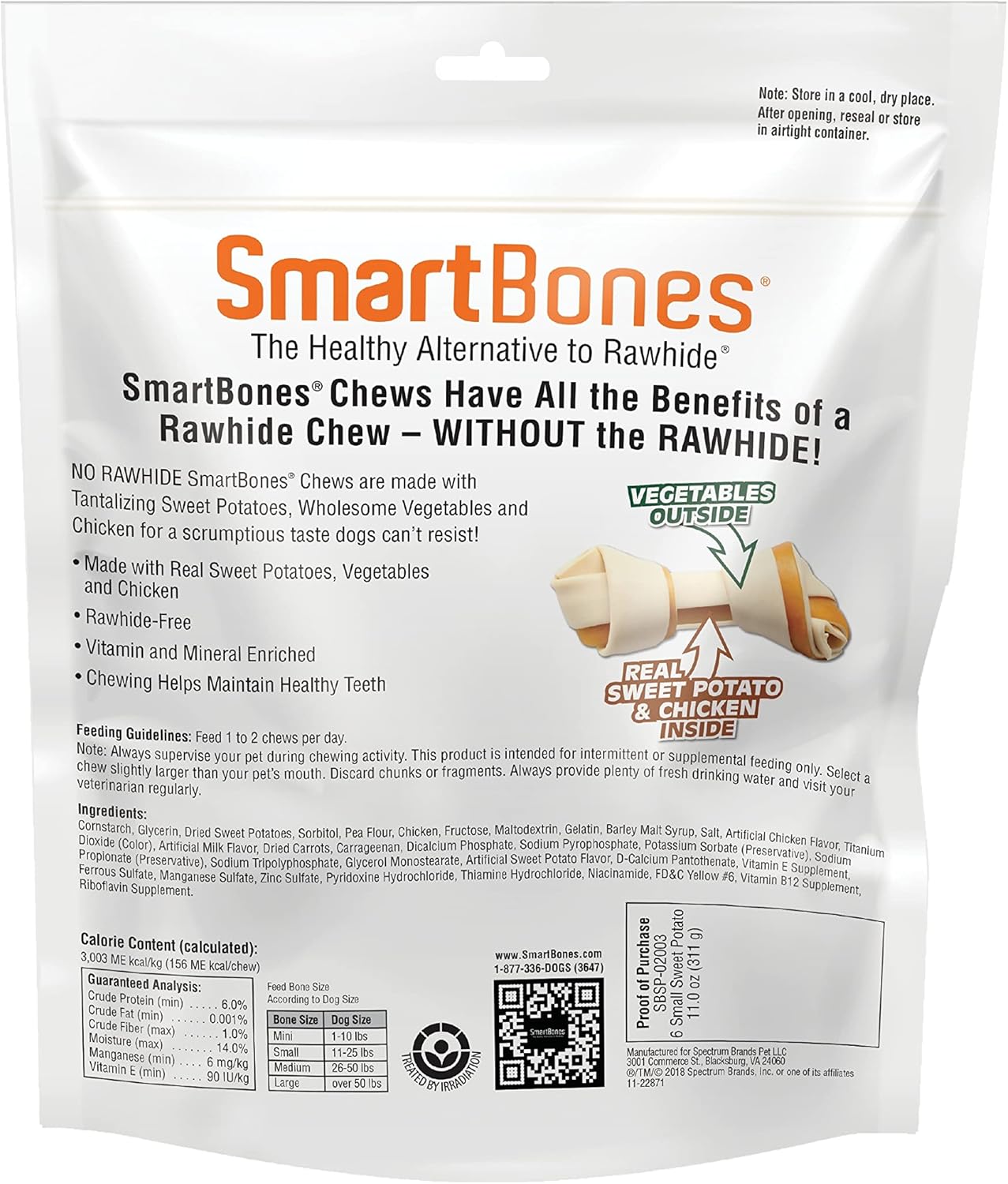 Smartbones Sweet Potato Dog Chews, Rawhide-Free Dog Chews Made With Real Meat And Vegetables, 6 Small