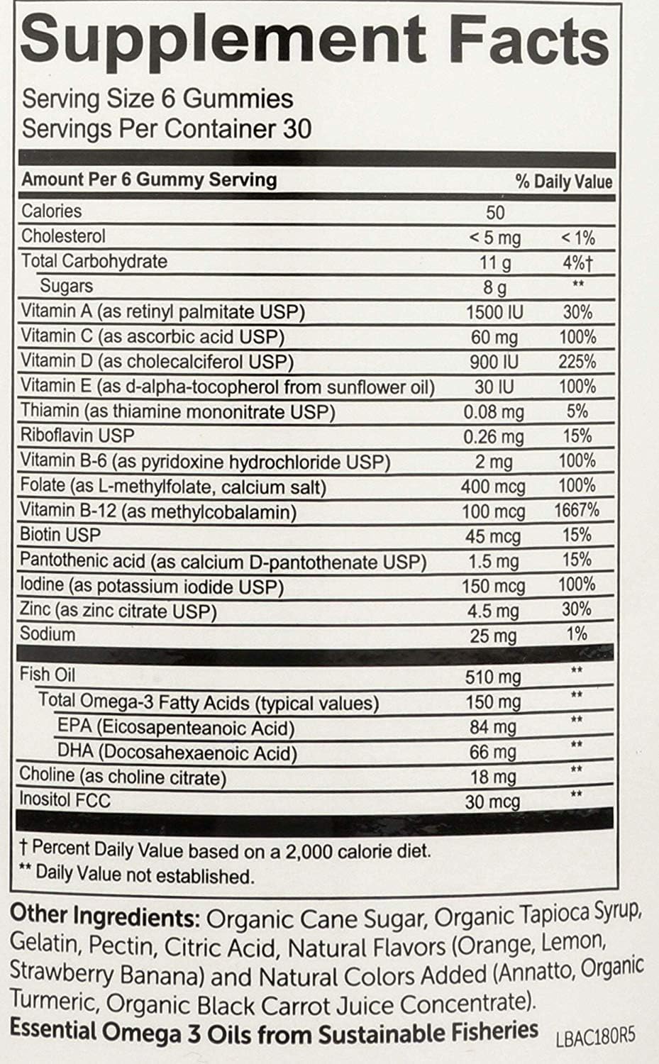 All-in-One Gummy Multi-Vitamins Plus Omega 3 & Vitamin D for Kids: 120 Count Single Bottle ( Multi-Pack)