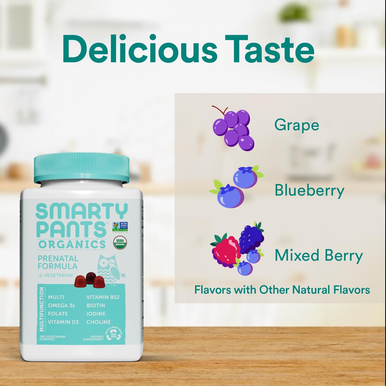 Smartypants Organic Prenatal Vitamins For Women, Multivitamin Gummies: Biotin, Methylfolate, Omega 3 (Ala), Vitamin D3, C, Vitamin B12, B6, Vitamin A, K2 & Zinc, Vegetarian
