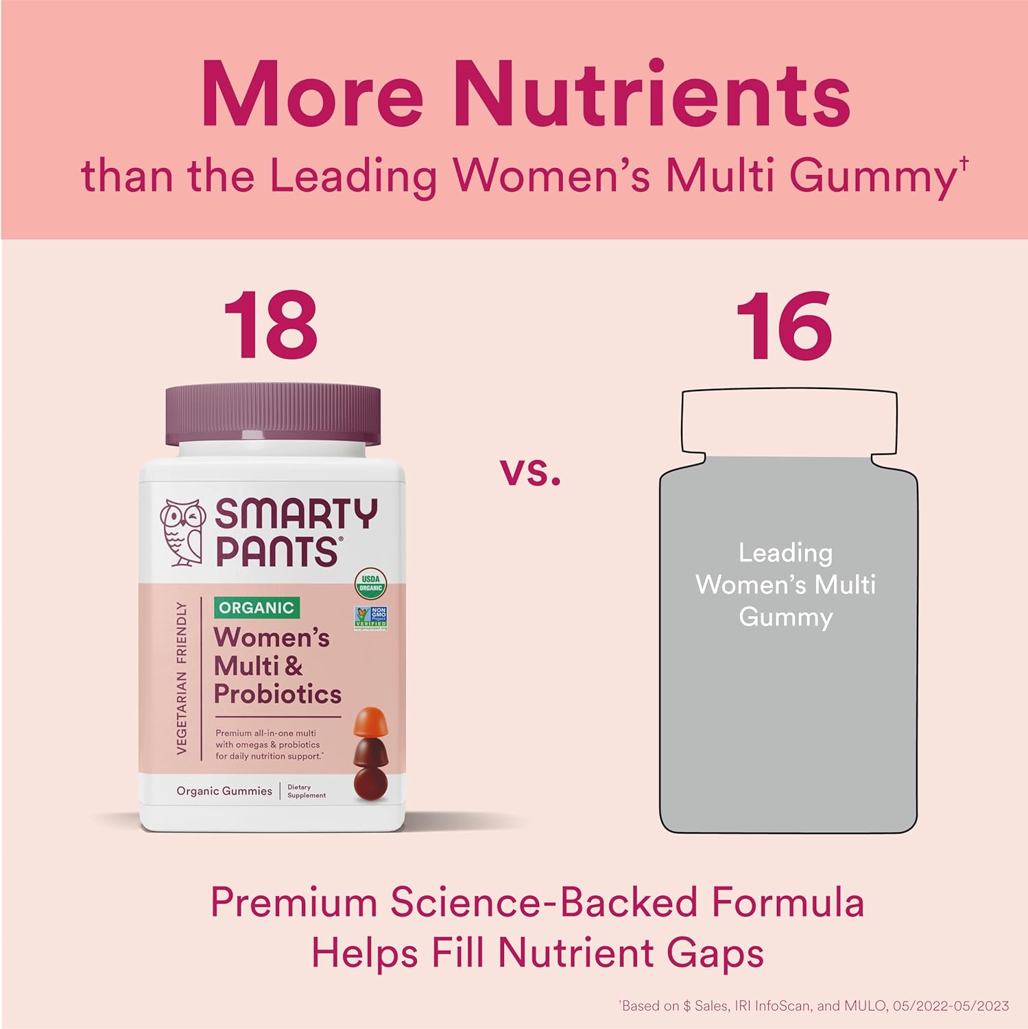 Smartypants Organic Women'S Multivitamin Gummies: Biotin, Probiotics, Methylfolate, Omega 3 (Ala), Vitamin D3, C, Vitamin B12, B6, Vitamin A, K & Zinc, Gluten Free, 120 Count (30 Day Supply)