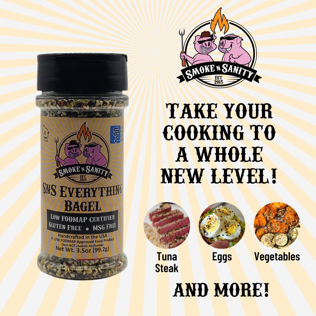 Smoke N Sanity Sns Everything Bagel Seasoning - Monash Certified Low Fodmap - Gluten-Free - Certified Kosher - Dairy-Free - Low Fodmap Food - Vegetarian (3.5 Oz Shaker)