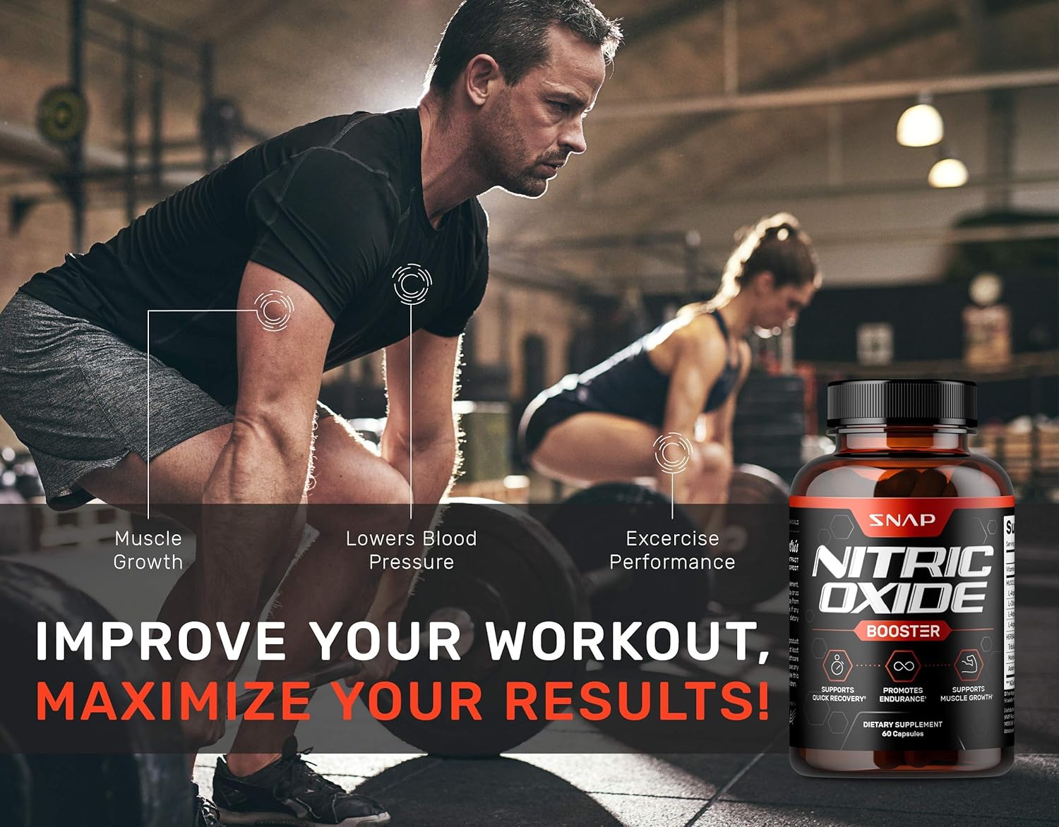 Nitric Oxide Booster by Snap Supplements - Pre Workout, Muscle Builder - L Arginine, L Citrulline 1500mg Formula, Tribulus Extract & Panax Ginseng, Strength & Endurance, - 60 Capsules Hair Growth Supplement for Men - Hair, Skin and Nail Vitamin - Beard Growth Stop Hair Loss & Regrow Hair with Biotin, Keratin, Bamboo & More! - 60 Capsules