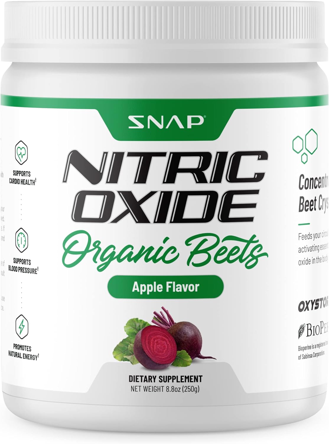 Snap Supplements Usda Organic Beet Root Powder, 3-In-1 Nitric Oxide Supplement, Support Healthy Blood Circulation, 250G (30 Servings, Apple)