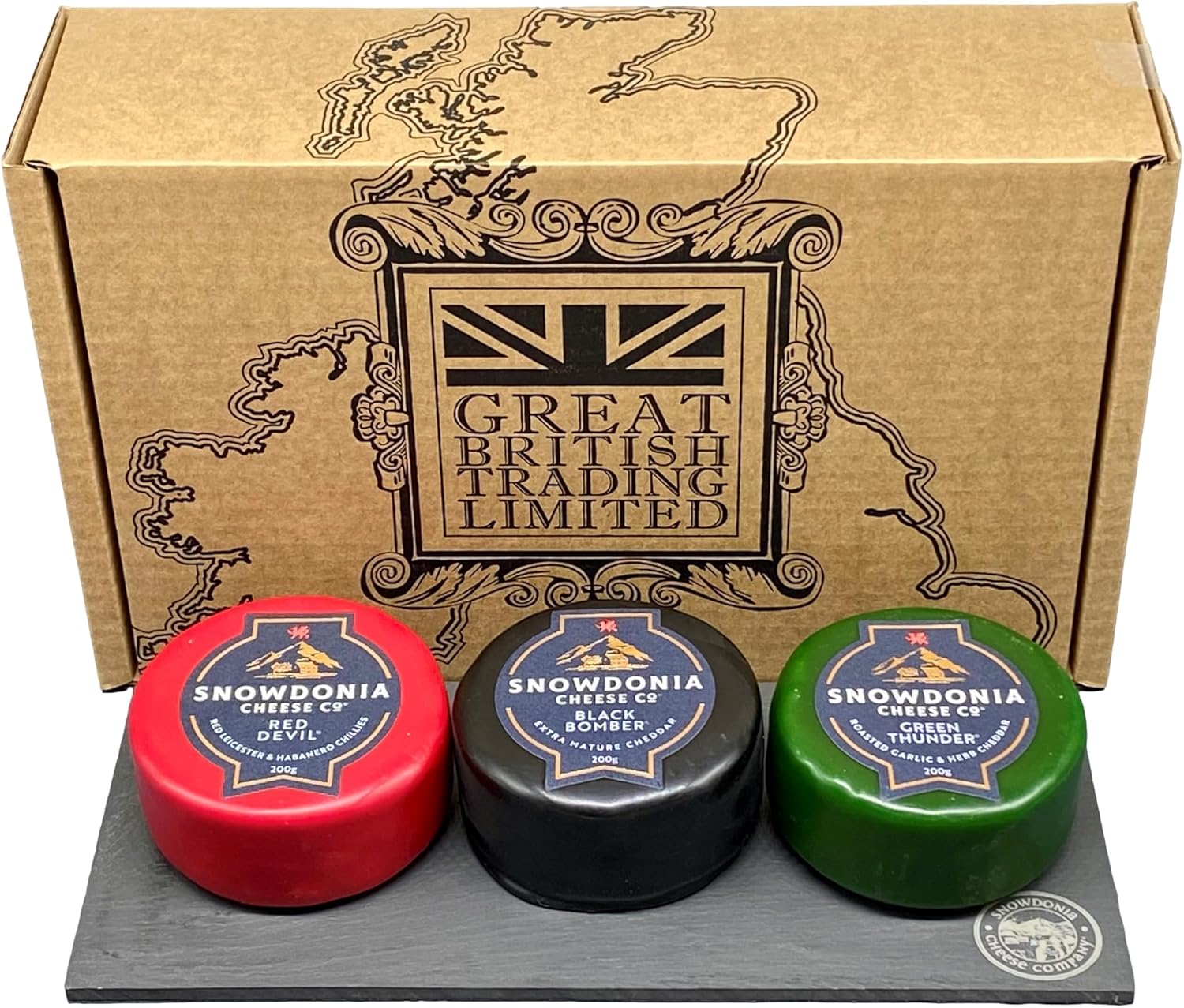 Snowdonia Slate Cheese Board Including Black Bomber, Red Devil & Green Thunder 200G Truckles From Great British Trading Limited
