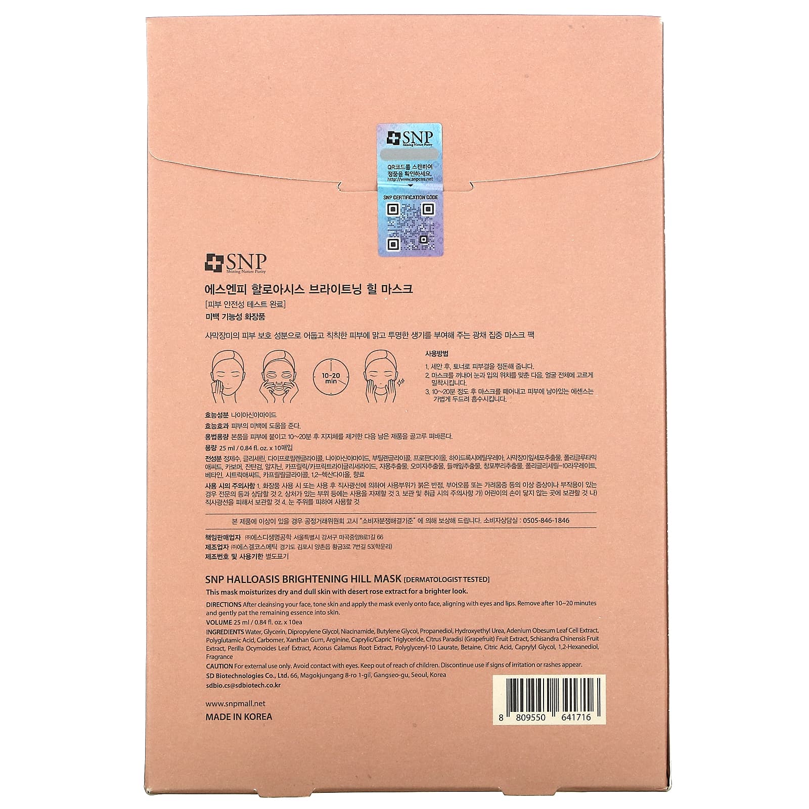 Snp, Halloasis, Brightening Hill Beauty Sheet Mask, 0.84 Fl Oz (25 Ml) Each