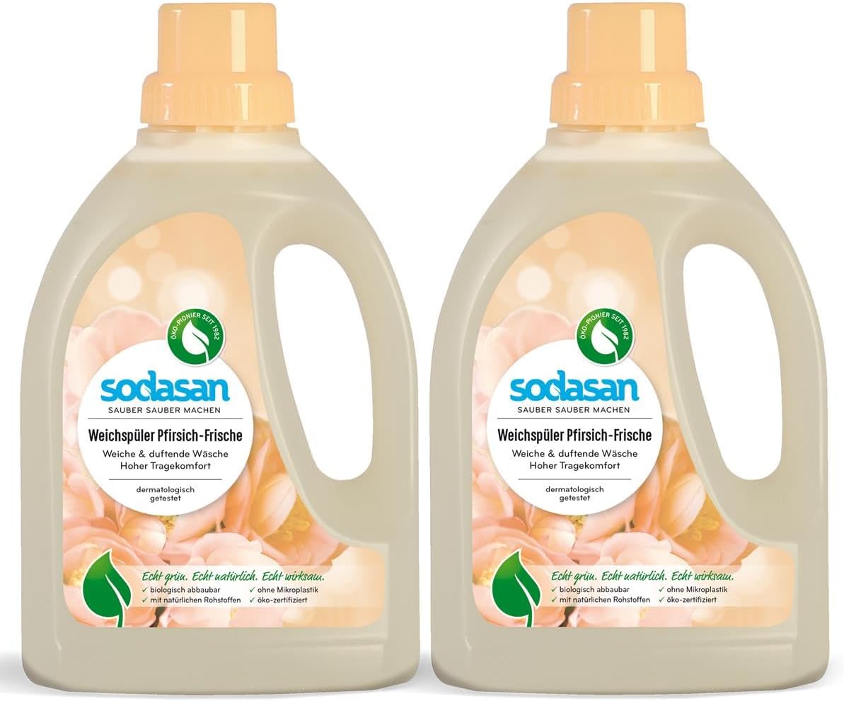 Product description Craftsmanship: softness and fragrance based on plant Natural fragrances give the laundry a velvety peach freshness. Removes detergent residue gently and fibre-deep. Nourishes and smooths the fibres. Suitable for all types of fibres. The very good skin compatibility is dermatologically tested. Processing/preparation: the innovative formula with plant ingredients such as organic aloe vera gives the laundry a comfortable fit. Also suitable for people with sensitive skin. Machine wash with a load of 4 - 5 kg. For a subtle fragrance experience: 1 dosing cap (35 ml). For a more intense fragrance experience: put 2 dosing caps in the fabric softener compartment of the washing machine. Hand wash: for a subtle fragrance experience: 1/2 dosing cap (18 ml). For a more intense fragrance experience: 1 dosing cap put the last rinse bath. Instructions for environmentally friendly washing: avoid filling the washing machine. Dose according to dirt and water hardness range. Use the lowest recommended washing temperature. Reduce packaging waste and buy large containers. Certification/en * The Vegan Society * NCP (Nature Care Product) Ingredients Aqua, Citric Acid, Polysaccaride, Essential Oil, Betaine natural, Citrate, Aloe Barbadensis P.when('A').execute(function(A) { A.on('a:expander:toggle_description:toggle:collapse', function(data) { window.scroll(0, data.expander.$expander[0].offsetTop-100); }); }); Safety Warning Hazard warnings. * EUH210 - Safety data sheet available on request. Safety instructions: * P102 - Keep out of reach of children. * P301 + P312 - IF SWALLOWED: If you feel unwell, call POISON CENTER / Doctor / [$1::]. * P302 + P352 - If touched with the skin: wash with plenty of water. * P305 + P351 + P338 - IN CASE OF CONTACT WITH EYES: Rinse gently with water for several minutes. Possible contact lenses according to Mo See more,Package quantity: g