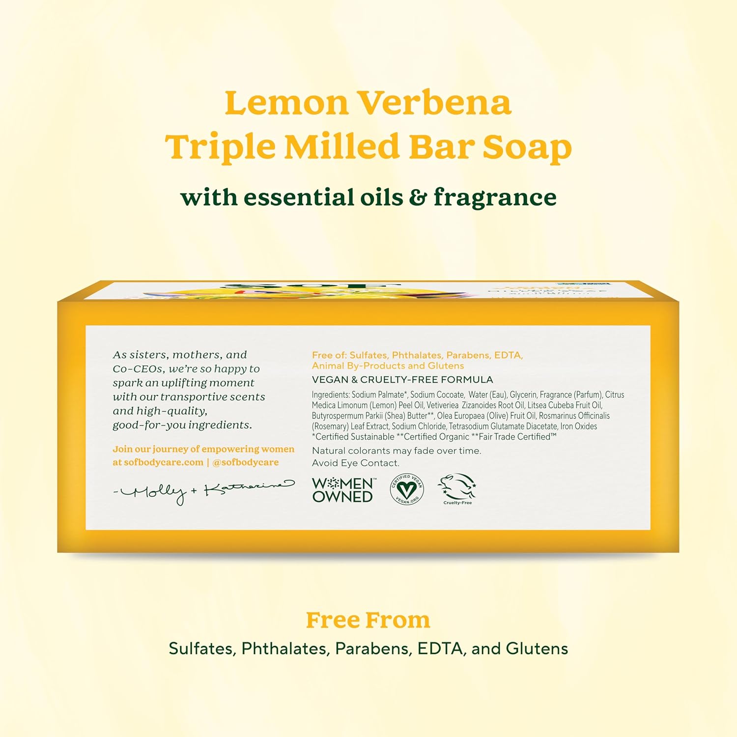 Sof Triple Milled Bar Soap - With Coconut Oil & Organic Shea Butter- Vegan & Non Gmo- Free From Phthalates, Sulfates & Parabens- Lemon Verbena - 6 Oz Bar 6 Bars