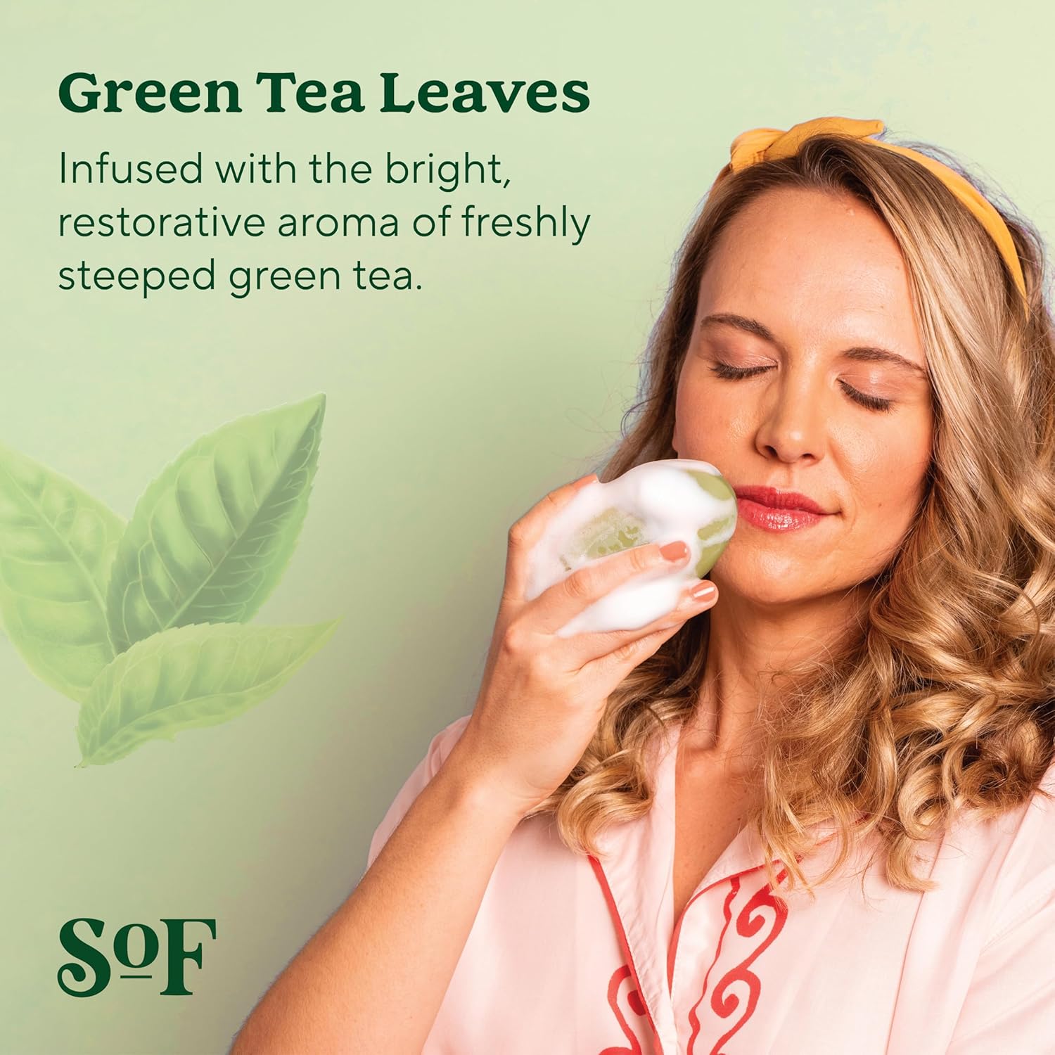 SERENE & SOPHISTICATED: Our Green Tea Leaves Bar Soap is infused with notes of green tea, chamomile, and citrus making you imagine welcoming a misty morning with a soothing green tea