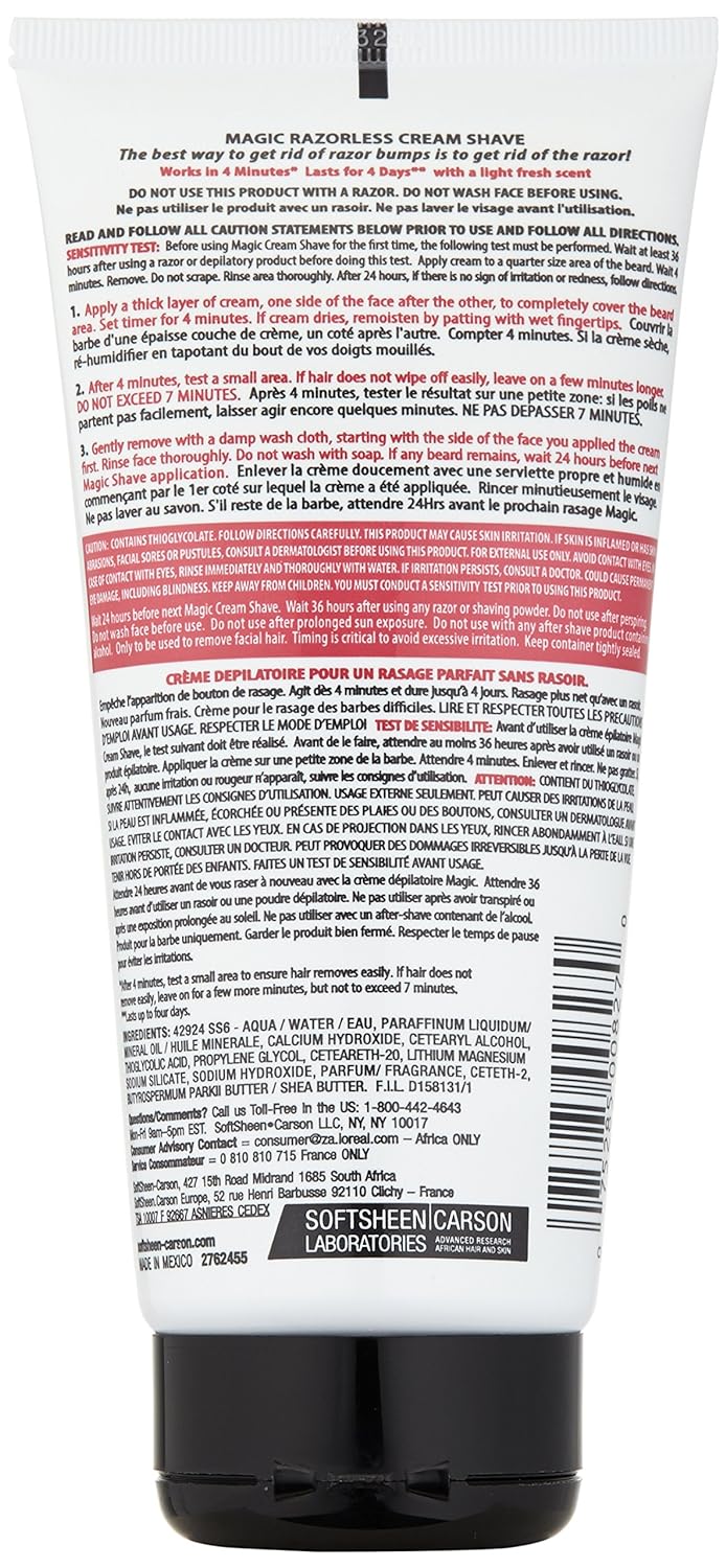 SoftSheen-Carson Magic Razorless Shaving Cream for Men, Hair Removal Cream, Extra Strength for Coarse Beards, No Razor Needed Depilatory Cream Works in 4 Minutes for Coarse Hair, 6 oz