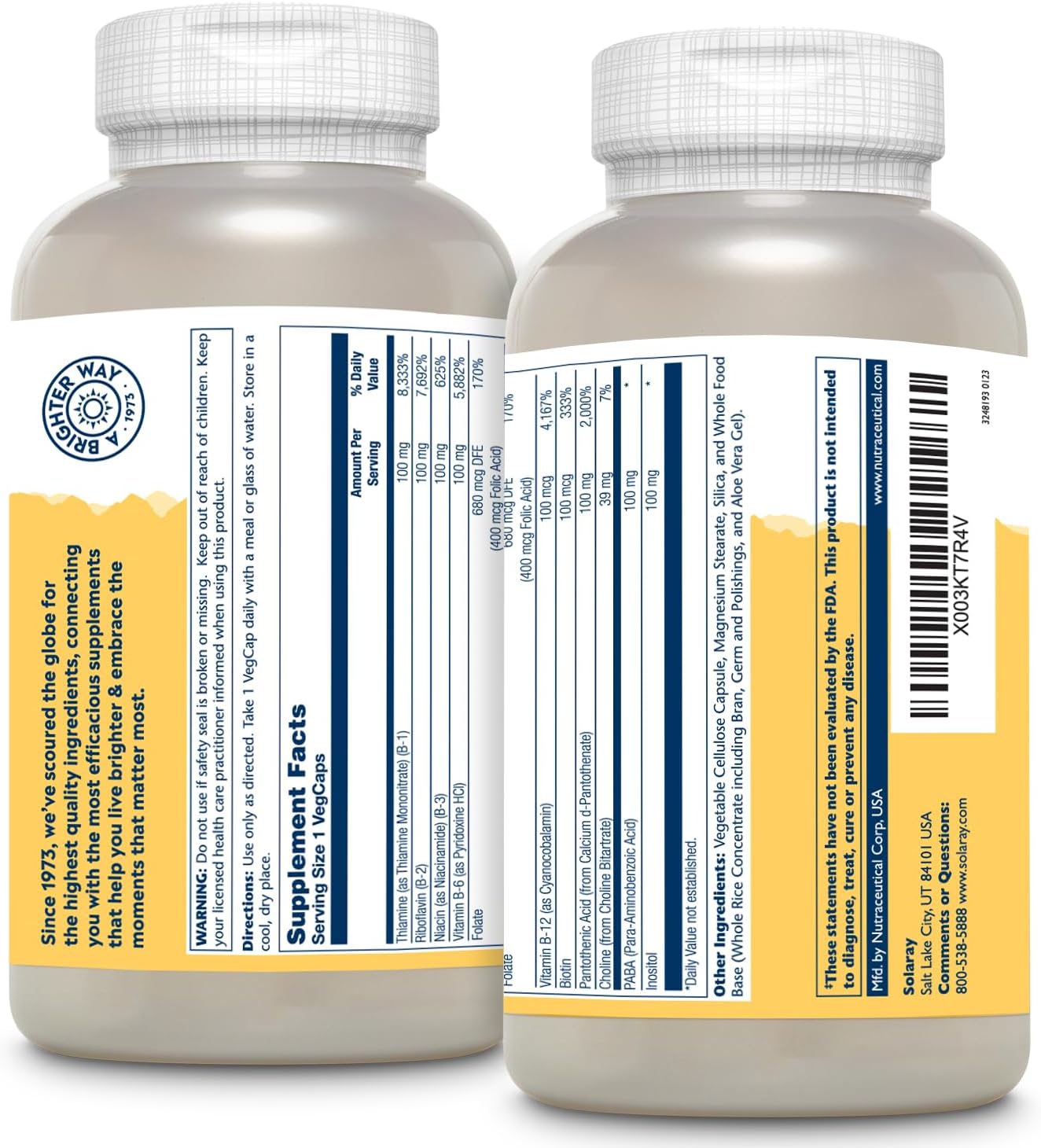 Solaray Vitamin B Complex 100 Mg, Healthy Energy Supplement, Red Blood Cell Formation, Nerve & Immune Support, Super B Complex Vitamins, Folic Acid, Vitamin B6, B12, Biotin, Vegan, 275 Vegcaps