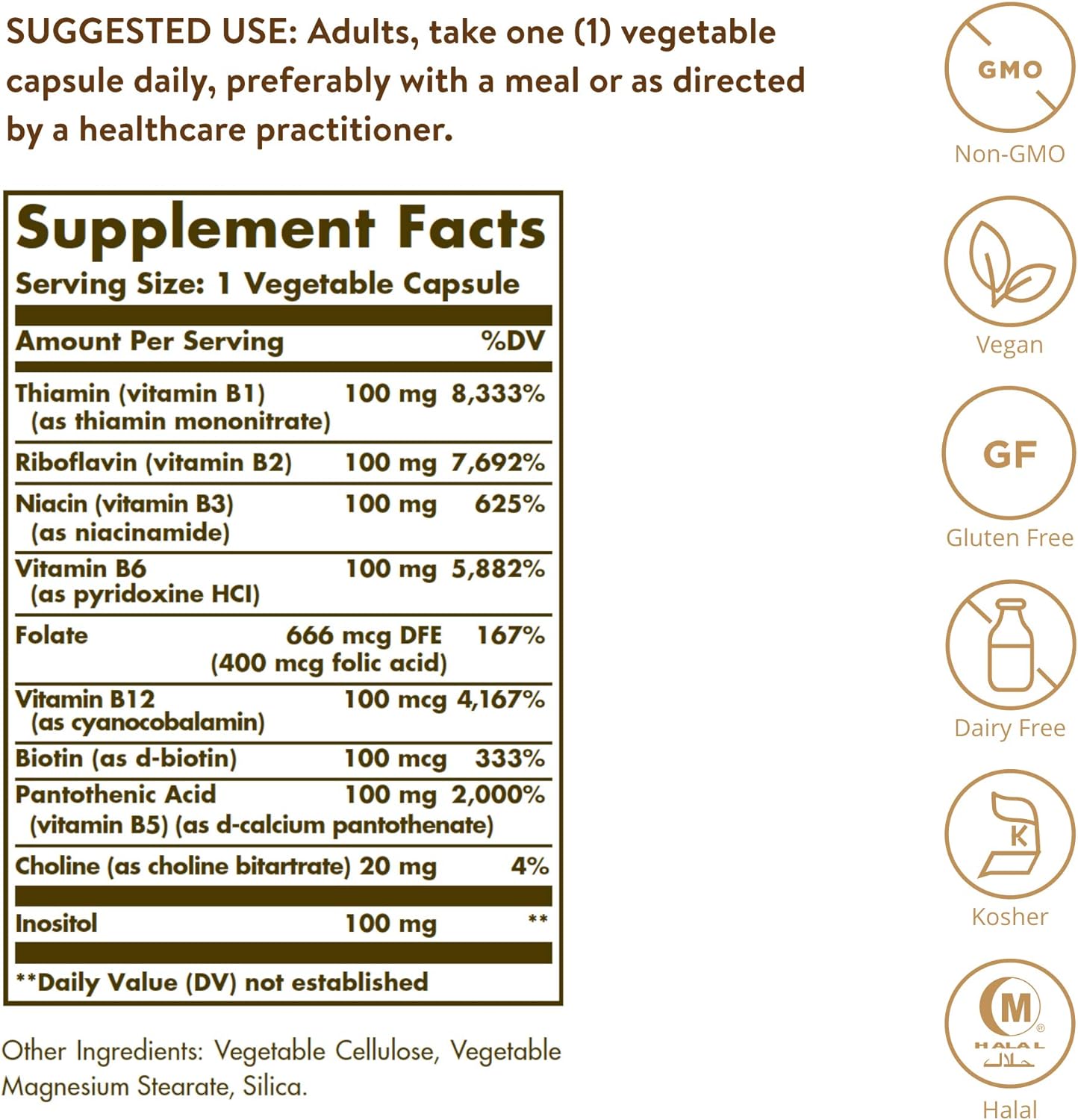 DESCRIPTION : Solgar B-Complex "100", 150 Vegetable Capsules - Heart Health - Nervous System - Supports Energy Metabolism - Non GMO, Vegan, Gluten/ Dairy Free, Kosher, Halal - 150 Servings150 Count (Pack of 1)