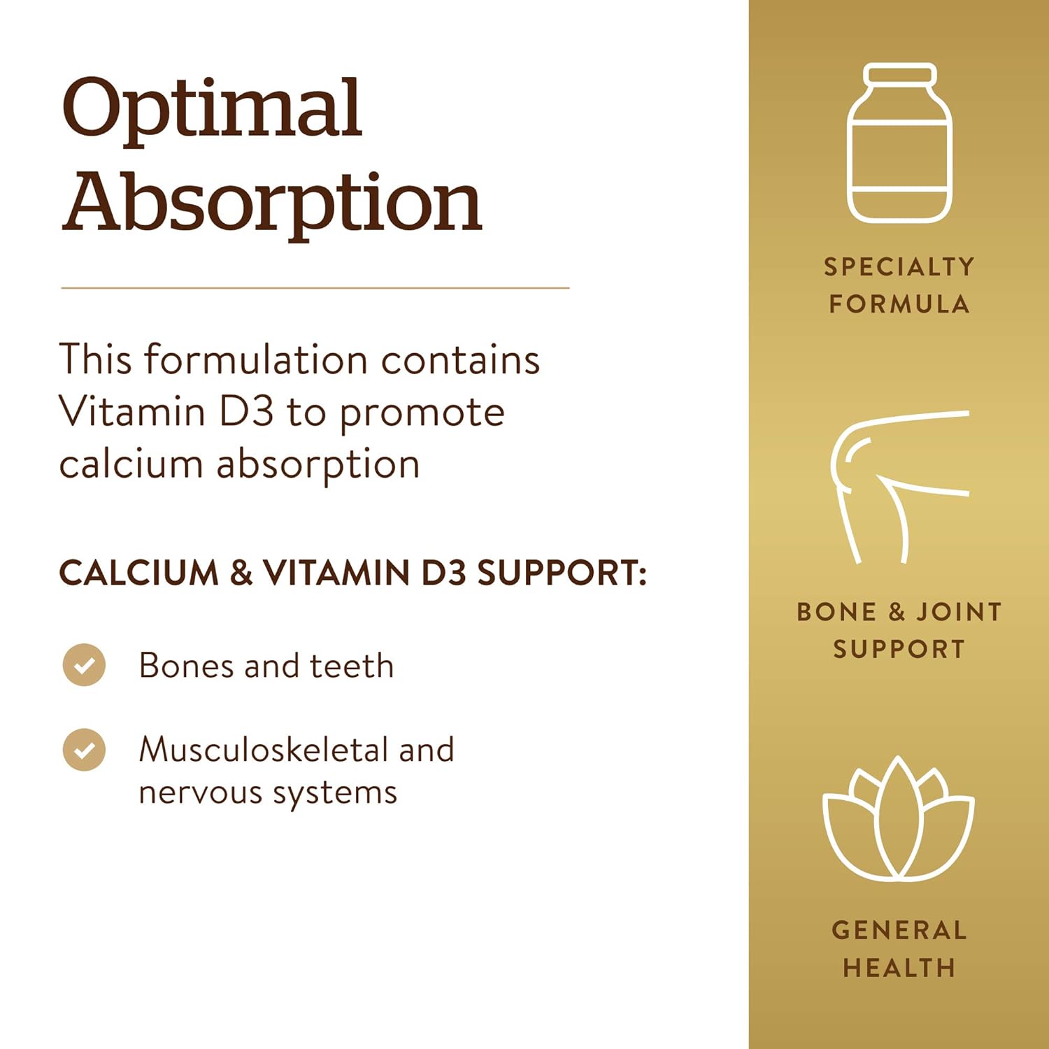 Calcium is an essential mineral needed every day for proper health. 99% of the body's calcium can be found in the bones and teeth. This mineral provides the building blocks that help keep bones and teeth strong and healthy. In addition, calcium helps to support the health of other systems in the body, including musculoskeletal and nervous systems. This formulation contains Vitamin D3 to promote calcium absorption.