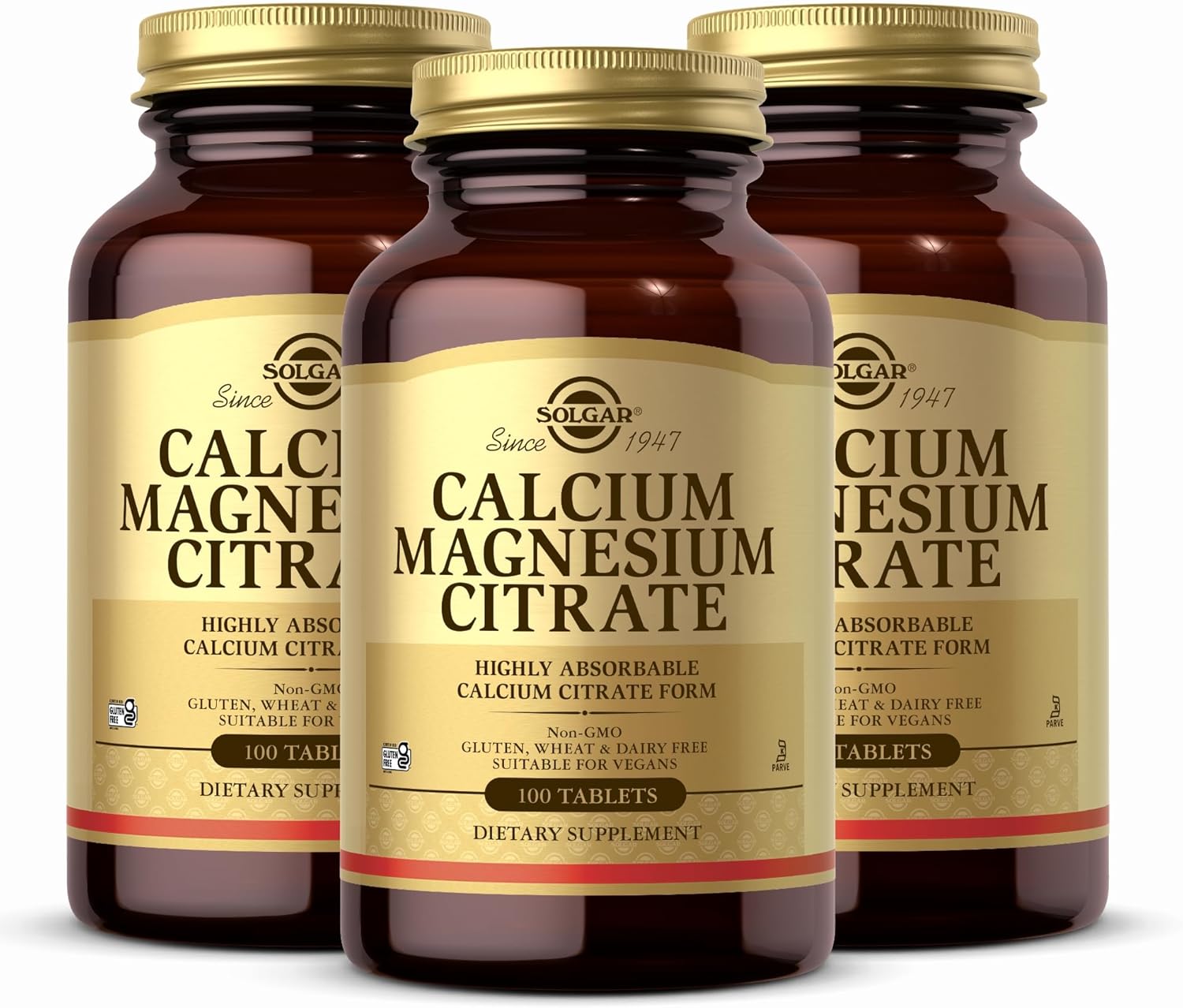 Solgar Calcium Magnesium Citrate - 100 Tablets, Pack Of 3 - Non-Gmo, Vegan, Gluten Free, Kosher - 60 Total Servings