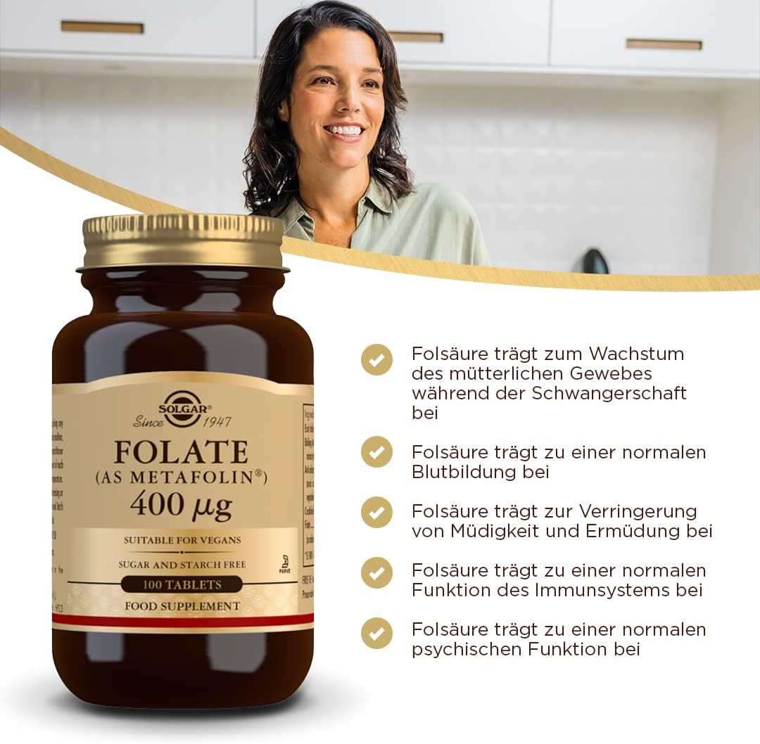 Solgar Folate (As Metafolin®) 400 µg Tablets - Food Supplement, Pack Of 100 - For Pregnancy And Those Trying To Conceive - Wellbeing For Men And Women - Vegan