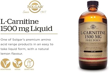 Solgar L-Carnitine 1500 Mg Liquid, 16 Oz. - Natural Lemon Flavor - Heart Health - Supports Energy, Metabolism, Exercise Endurance & Recovery - Non-Gmo, Vegan, Gluten & Dairy Free - About 31 Servings