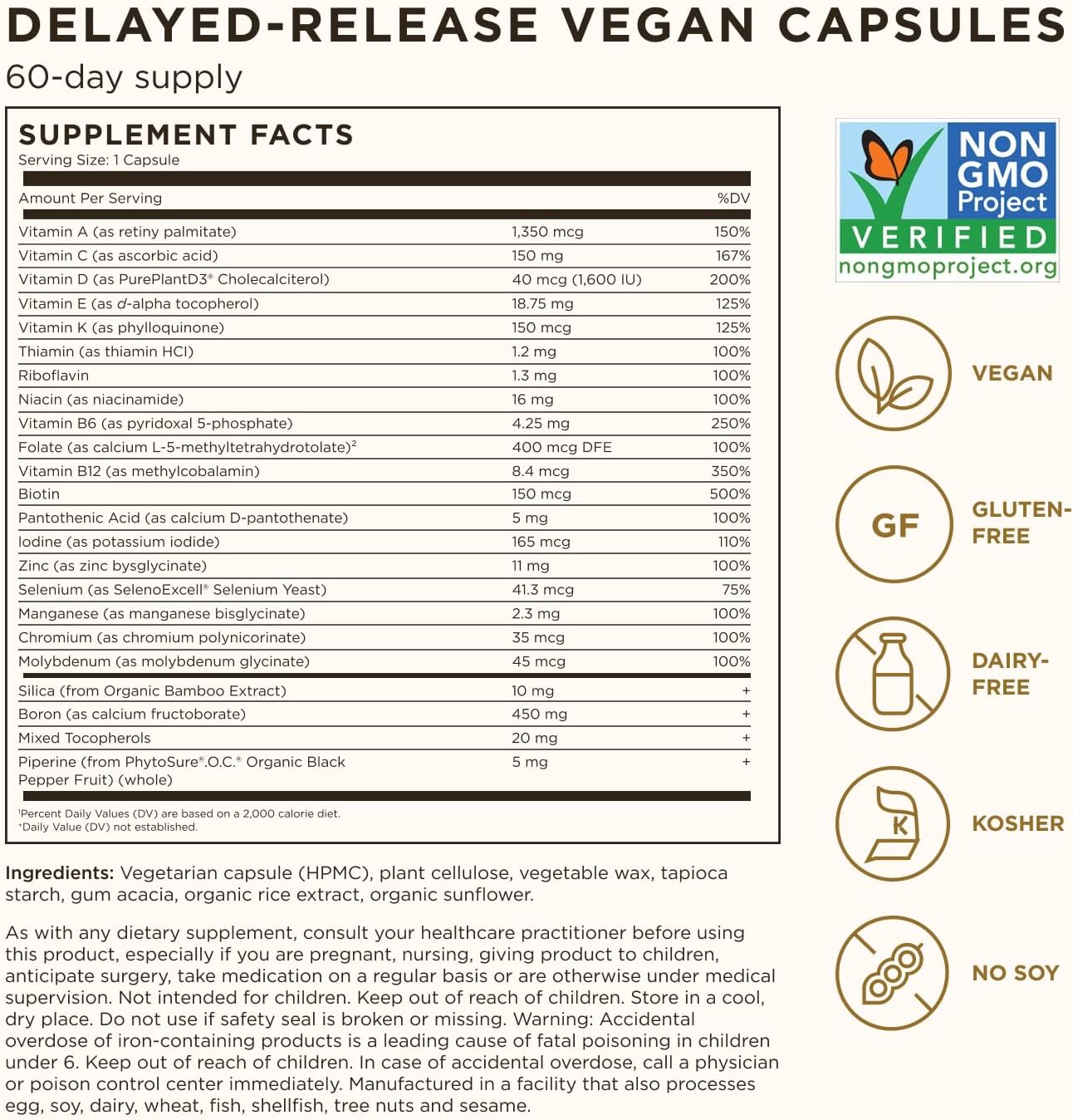 Whole Body Support: Complete Multi—Folate As L-5-Mthf And Vitamin E For Heart Health, Plant-Based Vitamin D3 For Bone And Breast Health, B-Vitamins For Energy And Stress Support, 500% Dv Of Biotin Plus Silica From Organic Bamboo For Hair, Skins And Nails
