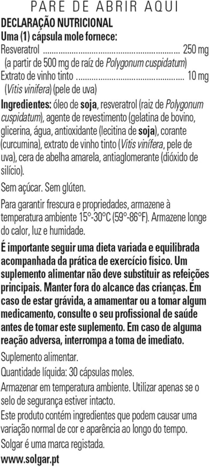 Solgar Resveratrol With Red Wine Extract, 250 Mg, 30 Softgels - Antioxidant Protection - Immune Support - Red Wine Polyphenol - Non-Gmo, Gluten Free, Dairy Free - 30 Servings
