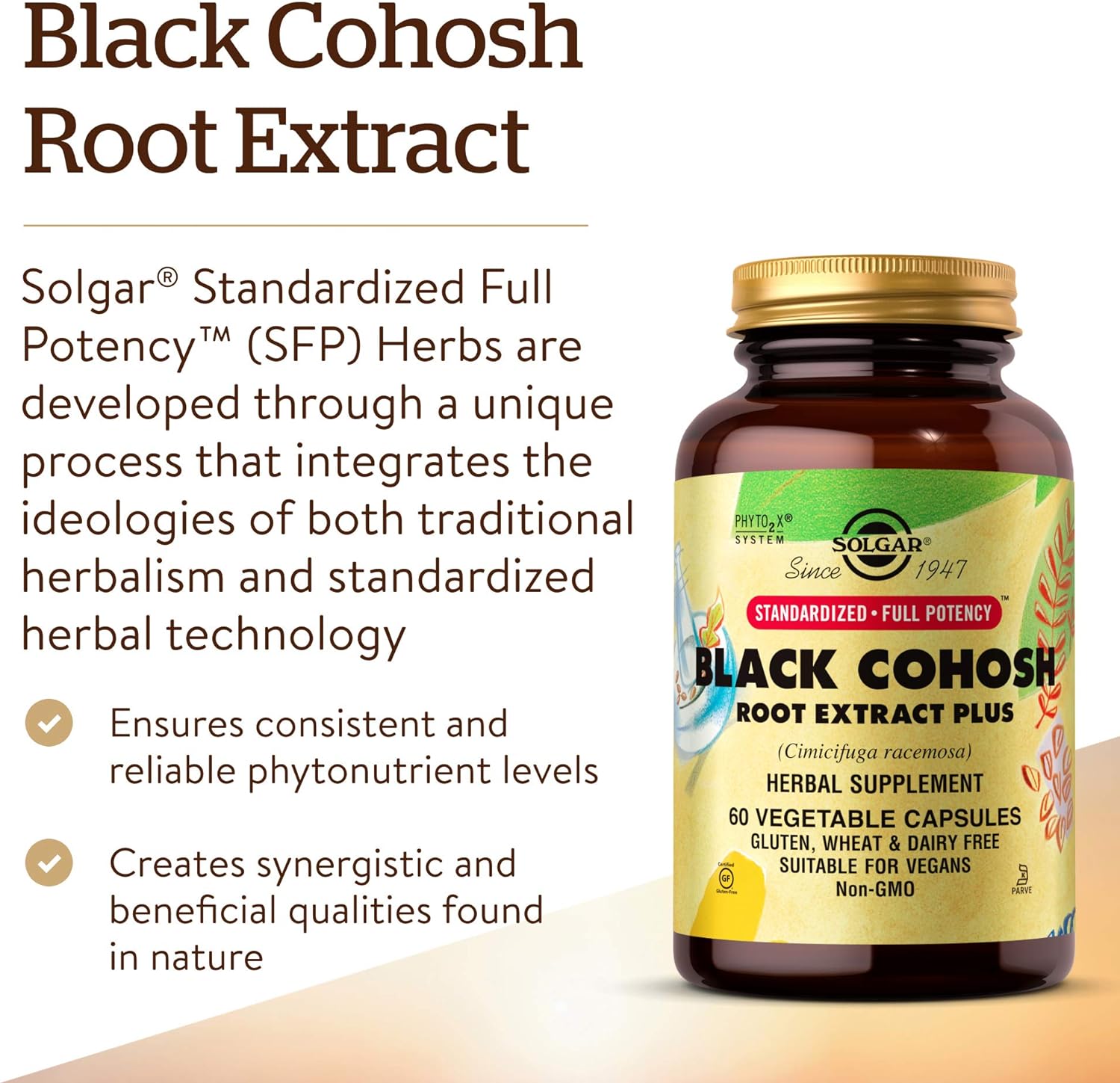 DESCRIPTION : Solgar Standardized Full Potency Black Cohosh Root Extract Vegetable Capsules, 60 Count